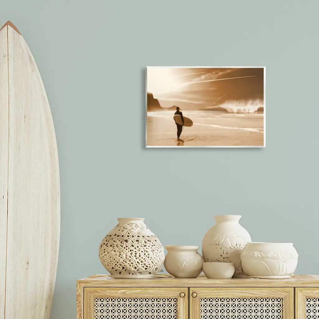 Our wall plaques start as high-quality lithograph prints mounted on durable 0.5-inch thick MDF wood. Each piece is hand finished and comes with a fresh layer of white foil on the sides to give it a crisp, clean look. Plaques arrive ready to hang without installation and come with removable plastic corners to keep them from damage in transit. Stupell Wall Art is made in the USA.Features: Dimensions: 15 x 0.5 x 10 InchesWall Plaque Product Sizes Include 15"x10" and 19"x13". All wall plaque products have a 0.5" Depth. Wall Art is Ready to Hang with Hardware Free Hanging. No installation required. For Easy Set Up Lean or Layer Artwork on Shelf or Against Wall.All of our wall plaques start off as high quality lithograph prints that are then mounted on durable 0.5 inch thick MDF wood. Each piece is hand finished and comes with a fresh layer of foil on the sides to give it a crisp clean look. Made In USA.Artwork Relates To: Nature, Sea, Sport, Surfing, Person, Beach, Coast, Shoreline, SurfboardDesign by Noah Bay