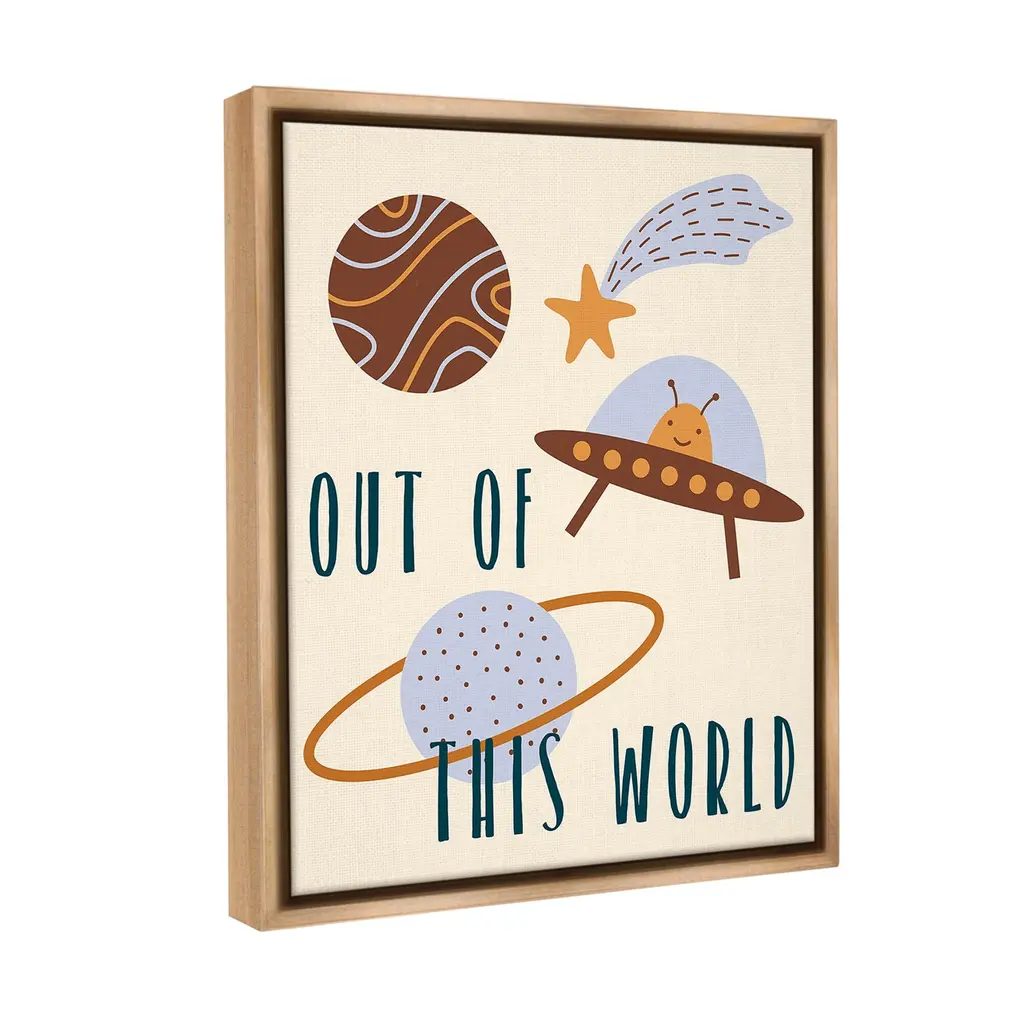 Elevate your home or office to the next level with Stupell Framed Floating Canvas Wall Art. Our premium hand-stretched canvas is mounted securely into a sturdy lightweight frame. The museum-style gap between the wrapped canvas and the box frame gives the illusion of floating artwork. Stupell Wall Art is made in the USA.Features: Dimensions: 17 x 1.7 x 21 Frame, 16 x 1.5 x 20 Canvas ArtFloating Frame Canvas Products are available in sizes 17"x21" and 25"x31". All Floating Frame Canvas Products have a 1.7" Depth.Wall Art is Ready to Hang with Hardware Free Hanging. No Installation required. For Easy Set Up Lean or Layer Artwork on Shelf or Against Wall. Artwork is Permently Fixed into the Frame.Our elevated 1.7" Thick Floating Frame is the perfect complement to our canvas style Wall Art. We use only the highest quality inks in house with industry leading printing solutions. Canvas is hand stretched over a durable wood foundation and then mounted securly into a Modern Box Frame. Made in the USA.Artwork Relates To: Alien, Outer Space, Spaceship, UFO, Stars, Minimal, Whimsical, Planet, Out of this WorldDesign by Lil' Rue
