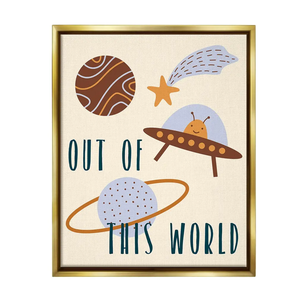 Add dimension to any room with our textured Framed Giclee Artwork. Our framed artwork is securely mounted into a 1.5-inch thick wood grain frame and ready to hang. Frames are available in three alluring styles: black, gray farmhouse and white. In addition, you should check out our oversized options if you want a statement piece. Stupell Wall Art is made in the USA.Features: Dimensions: 11 x 1.5 x 14 FramedFramed Giclee Products are available in the sizes 11"x14", 16"x20" or 24"x30". All Framed Giclee Products have a 1.5" Depth. Wall Art is Ready to Hang with Hardware Free Hanging. No installation required. For Easy Set Up Lean or Layer Artwork on Shelf or Against Wall.Our giclée prints are carefully mounted on a durable MDF backing, and then perfectly finished in a 1.5 inch thick woodgrain frame. Mounted frame colors include black, gray farmhouse and white. Made In USA.Artwork Relates To: Alien, Outer Space, Spaceship, UFO, Stars, Minimal, Whimsical, Planet, Out of this WorldDesign by Lil' Rue