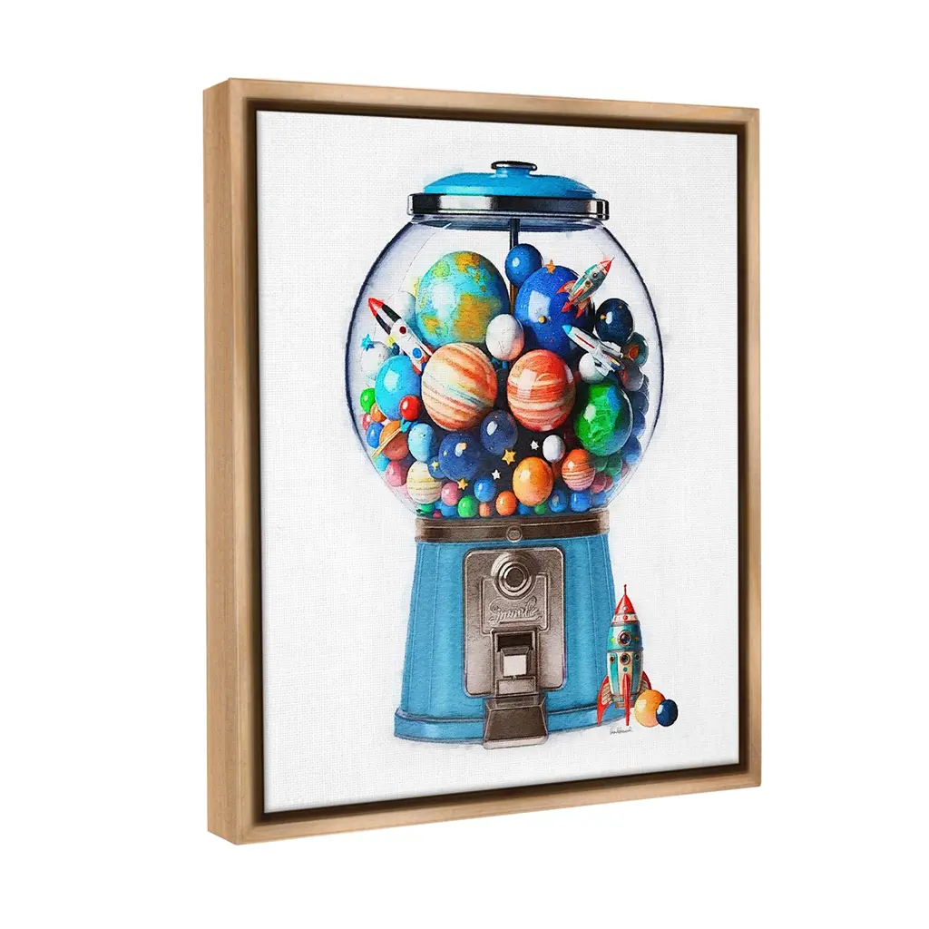 Elevate your home or office to the next level with Stupell Framed Floating Canvas Wall Art. Our premium hand-stretched canvas is mounted securely into a sturdy lightweight frame. The museum-style gap between the wrapped canvas and the box frame gives the illusion of floating artwork. Stupell Wall Art is made in the USA.Features: Dimensions: 17 x 1.7 x 21 Frame, 16 x 1.5 x 20 Canvas ArtFloating Frame Canvas Products are available in sizes 17"x21" and 25"x31". All Floating Frame Canvas Products have a 1.7" Depth.Wall Art is Ready to Hang with Hardware Free Hanging. No Installation required. For Easy Set Up Lean or Layer Artwork on Shelf or Against Wall. Artwork is Permently Fixed into the Frame.Our elevated 1.7" Thick Floating Frame is the perfect complement to our canvas style Wall Art. We use only the highest quality inks in house with industry leading printing solutions. Canvas is hand stretched over a durable wood foundation and then mounted securly into a Modern Box Frame. Made in the USA.Artwork Relates To: Gumball Machine, Candy, Sweets, Vintage, Retro, Outer Space, Spaceship, PlanetDesign by Amanda Greenwood