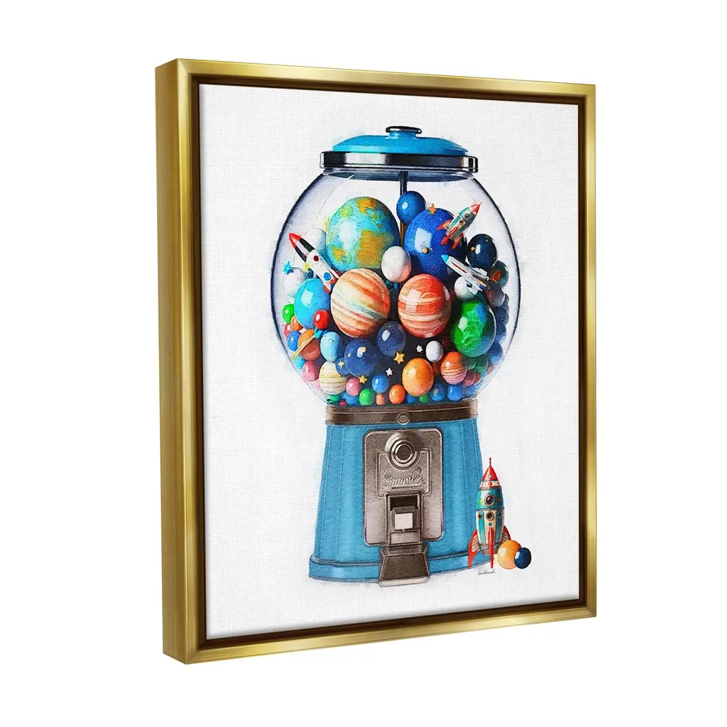 Elevate your home or office to the next level with Stupell Framed Floating Canvas Wall Art. Our premium hand-stretched canvas is mounted securely into a sturdy lightweight frame. The museum-style gap between the wrapped canvas and the box frame gives the illusion of floating artwork. Stupell Wall Art is made in the USA.Features: Dimensions: 17 x 1.7 x 21 Frame, 16 x 1.5 x 20 Canvas ArtFloating Frame Canvas Products are available in sizes 17"x21" and 25"x31". All Floating Frame Canvas Products have a 1.7" Depth.Wall Art is Ready to Hang with Hardware Free Hanging. No Installation required. For Easy Set Up Lean or Layer Artwork on Shelf or Against Wall. Artwork is Permently Fixed into the Frame.Our elevated 1.7" Thick Floating Frame is the perfect complement to our canvas style Wall Art. We use only the highest quality inks in house with industry leading printing solutions. Canvas is hand stretched over a durable wood foundation and then mounted securly into a Modern Box Frame. Made in the USA.Artwork Relates To: Gumball Machine, Candy, Sweets, Vintage, Retro, Outer Space, Spaceship, PlanetDesign by Amanda Greenwood