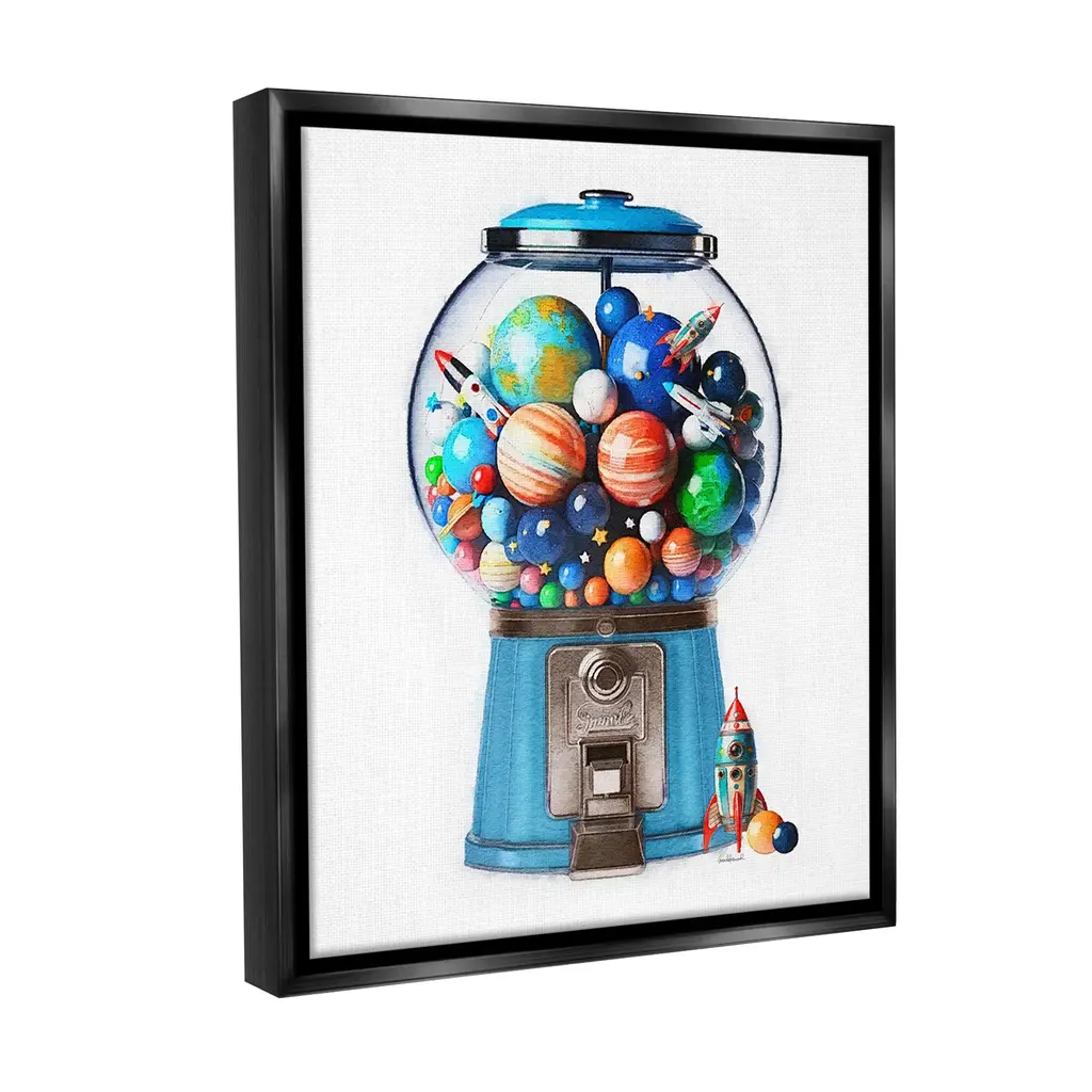 Elevate your home or office to the next level with Stupell Framed Floating Canvas Wall Art. Our premium hand-stretched canvas is mounted securely into a sturdy lightweight frame. The museum-style gap between the wrapped canvas and the box frame gives the illusion of floating artwork. Stupell Wall Art is made in the USA.Features: Dimensions: 17 x 1.7 x 21 Frame, 16 x 1.5 x 20 Canvas ArtFloating Frame Canvas Products are available in sizes 17"x21" and 25"x31". All Floating Frame Canvas Products have a 1.7" Depth.Wall Art is Ready to Hang with Hardware Free Hanging. No Installation required. For Easy Set Up Lean or Layer Artwork on Shelf or Against Wall. Artwork is Permently Fixed into the Frame.Our elevated 1.7" Thick Floating Frame is the perfect complement to our canvas style Wall Art. We use only the highest quality inks in house with industry leading printing solutions. Canvas is hand stretched over a durable wood foundation and then mounted securly into a Modern Box Frame. Made in the USA.Artwork Relates To: Gumball Machine, Candy, Sweets, Vintage, Retro, Outer Space, Spaceship, PlanetDesign by Amanda Greenwood