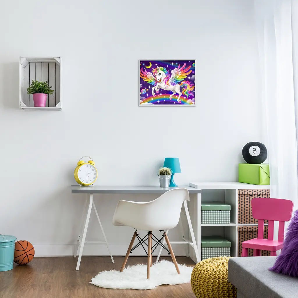 Add dimension to any room with our textured Framed Giclee Artwork. Our framed artwork is securely mounted into a 1.5-inch thick wood grain frame and ready to hang. Frames are available in three alluring styles: black, gray farmhouse and white. In addition, you should check out our oversized options if you want a statement piece. Stupell Wall Art is made in the USA.Features: Dimensions: 14 x 1.5 x 11 FramedFramed Giclee Products are available in the sizes 14"x11", 20"x16" or 30"x24". All Framed Giclee Products have a 1.5" Depth. Wall Art is Ready to Hang with Hardware Free Hanging. No installation required. For Easy Set Up Lean or Layer Artwork on Shelf or Against Wall.Our giclée prints are carefully mounted on a durable MDF backing, and then perfectly finished in a 1.5 inch thick woodgrain frame. Mounted frame colors include black, gray farmhouse and white. Made In USA.Artwork Relates To: Modern, Animal, Horse, Unicorn, Fantasy, Rainbow, Stars, Pattern, Outer Space, Clouds, Planet, MoonDesign by Kayomi Harai