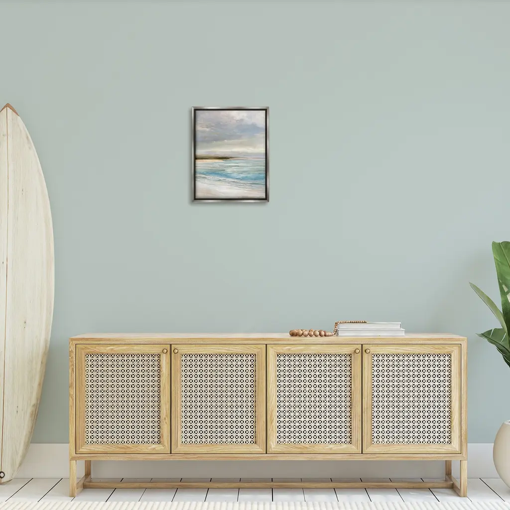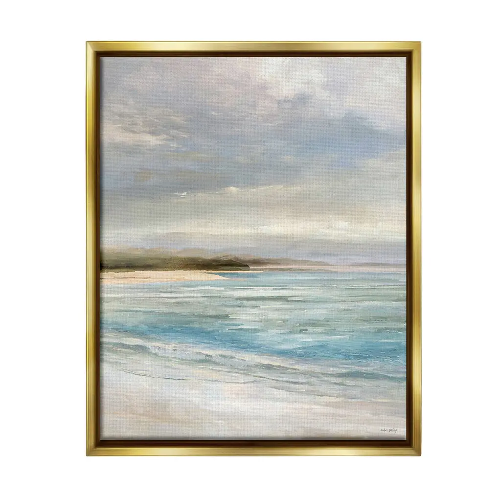 Elevate your home or office to the next level with Stupell Framed Floating Canvas Wall Art. Our premium hand-stretched canvas is mounted securely into a sturdy lightweight frame. The museum-style gap between the wrapped canvas and the box frame gives the illusion of floating artwork. Stupell Wall Art is made in the USA.Features: Dimensions: 17 x 1.7 x 21 Frame, 16 x 1.5 x 20 Canvas ArtFloating Frame Canvas Products are available in sizes 17"x21" and 25"x31". All Floating Frame Canvas Products have a 1.7" Depth.Wall Art is Ready to Hang with Hardware Free Hanging. No Installation required. For Easy Set Up Lean or Layer Artwork on Shelf or Against Wall. Artwork is Permently Fixed into the Frame.Our elevated 1.7" Thick Floating Frame is the perfect complement to our canvas style Wall Art. We use only the highest quality inks in house with industry leading printing solutions. Canvas is hand stretched over a durable wood foundation and then mounted securly into a Modern Box Frame. Made in the USA.Artwork Relates To: Painting, Sea, Water, Beach, Coast, Shoreline, Sky, Scenery, Horizon, LandscapeDesign by Amber Sterling
