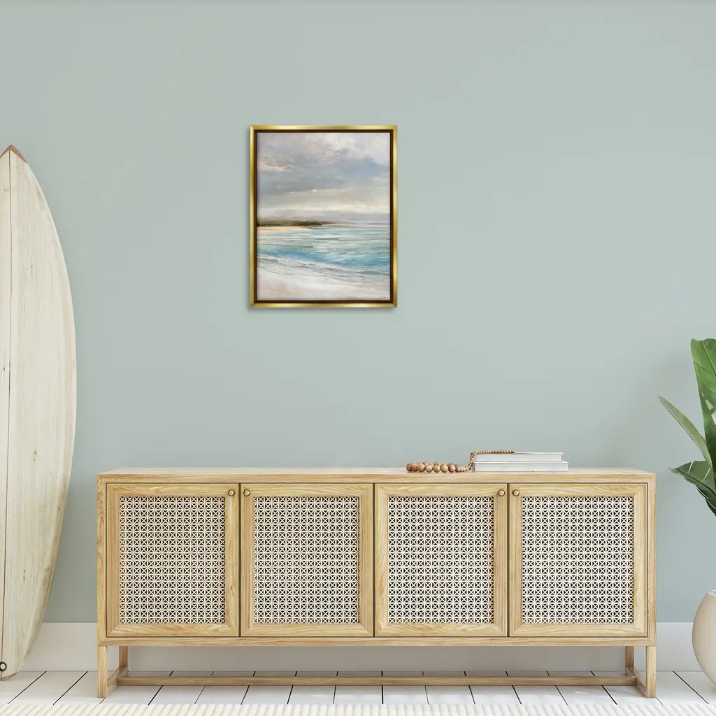 Elevate your home or office to the next level with Stupell Framed Floating Canvas Wall Art. Our premium hand-stretched canvas is mounted securely into a sturdy lightweight frame. The museum-style gap between the wrapped canvas and the box frame gives the illusion of floating artwork. Stupell Wall Art is made in the USA.Features: Dimensions: 17 x 1.7 x 21 Frame, 16 x 1.5 x 20 Canvas ArtFloating Frame Canvas Products are available in sizes 17"x21" and 25"x31". All Floating Frame Canvas Products have a 1.7" Depth.Wall Art is Ready to Hang with Hardware Free Hanging. No Installation required. For Easy Set Up Lean or Layer Artwork on Shelf or Against Wall. Artwork is Permently Fixed into the Frame.Our elevated 1.7" Thick Floating Frame is the perfect complement to our canvas style Wall Art. We use only the highest quality inks in house with industry leading printing solutions. Canvas is hand stretched over a durable wood foundation and then mounted securly into a Modern Box Frame. Made in the USA.Artwork Relates To: Painting, Sea, Water, Beach, Coast, Shoreline, Sky, Scenery, Horizon, LandscapeDesign by Amber Sterling