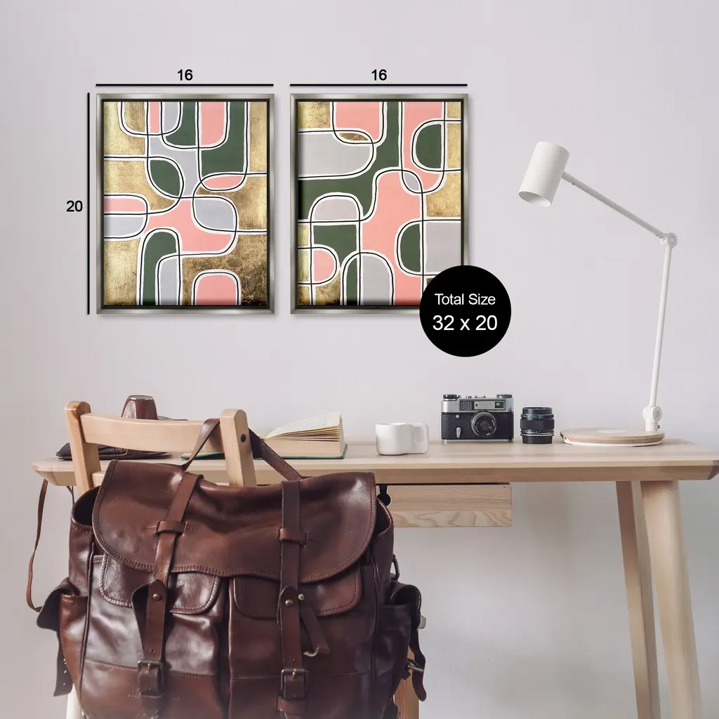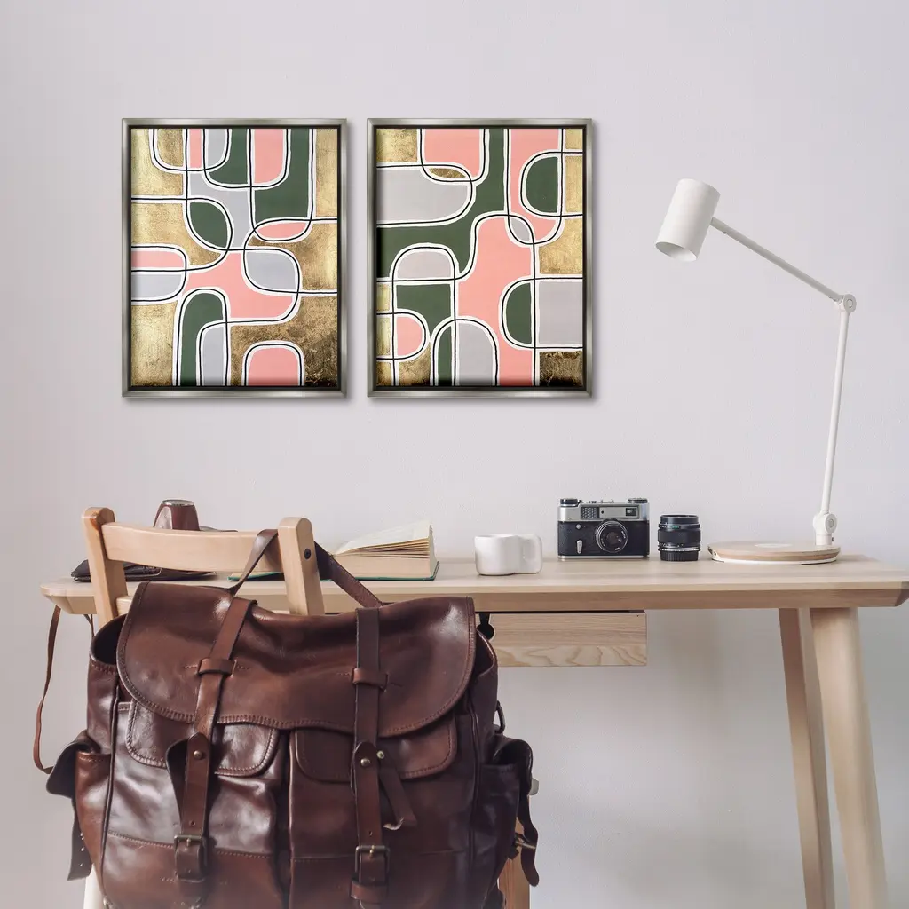 Elevate your home or office to the next level with Stupell Framed Floating Canvas Wall Art. Our premium hand-stretched canvas is mounted securely into a sturdy lightweight frame. The museum-style gap between the wrapped canvas and the box frame gives the illusion of floating artwork. Stupell Wall Art is made in the USA.Features: Dimensions: 2 Piece Set, Each Frame is 17 x 1.7 x 21Two Piece Floater Framed Canvas are available as 17x21 or 25x31 Panels. All Floater Frame Products have a 1.7" Depth.Wall Art is Ready to Hang with Hardware Free Hanging. No Installation required. For Easy Set Up Lean or Layer Artwork on Shelf or Against Wall. Artwork is Permently Fixed into the Frame.Our elevated 1.7" Thick Floating Frame is the perfect complement to our canvas style Wall Art. We use only the highest quality inks in house with industry leading printing solutions. Canvas is hand stretched over a durable wood foundation and then mounted securly into a Modern Box Frame. Made in the USA.Artwork Relates To: Abstract, Modern, Shapes, Geometric, Pattern, Design by Michael Willett