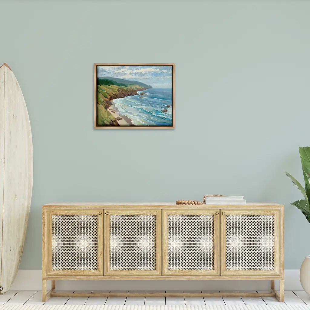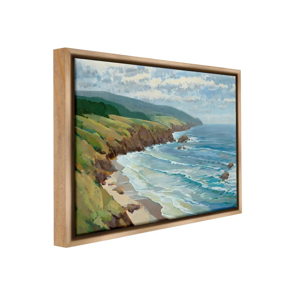 Elevate your home or office to the next level with Stupell Framed Floating Canvas Wall Art. Our premium hand-stretched canvas is mounted securely into a sturdy lightweight frame. The museum-style gap between the wrapped canvas and the box frame gives the illusion of floating artwork. Stupell Wall Art is made in the USA.Features: Dimensions: 21 x 1.7 x 17 Frame, 20 x 1.5 x 16 Canvas ArtFloating Frame Canvas Products are available in sizes 21"x17" and 31"x25". All Floating Frame Canvas Products have a 1.7" Depth.Wall Art is Ready to Hang with Hardware Free Hanging. No Installation required. For Easy Set Up Lean or Layer Artwork on Shelf or Against Wall. Artwork is Permently Fixed into the Frame.Our elevated 1.7" Thick Floating Frame is the perfect complement to our canvas style Wall Art. We use only the highest quality inks in house with industry leading printing solutions. Canvas is hand stretched over a durable wood foundation and then mounted securly into a Modern Box Frame. Made in the USA.Artwork Relates To: Nature, Water, Sea, Painting, Shoreline, Coast, Beach, Scenery, Landscape, Sea Waves, Cove, CliffDesign by Scott Brems