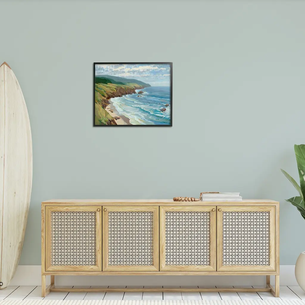 Add dimension to any room with our textured Framed Giclee Artwork. Our framed artwork is securely mounted into a 1.5-inch thick wood grain frame and ready to hang. Frames are available in three alluring styles: black, gray farmhouse and white. In addition, you should check out our oversized options if you want a statement piece. Stupell Wall Art is made in the USA.Features: Dimensions: 14 x 1.5 x 11 FramedFramed Giclee Products are available in the sizes 14"x11", 20"x16" or 30"x24". All Framed Giclee Products have a 1.5" Depth. Wall Art is Ready to Hang with Hardware Free Hanging. No installation required. For Easy Set Up Lean or Layer Artwork on Shelf or Against Wall.Our giclée prints are carefully mounted on a durable MDF backing, and then perfectly finished in a 1.5 inch thick woodgrain frame. Mounted frame colors include black, gray farmhouse and white. Made In USA.Artwork Relates To: Nature, Water, Sea, Painting, Shoreline, Coast, Beach, Scenery, Landscape, Sea Waves, Cove, CliffDesign by Scott Brems