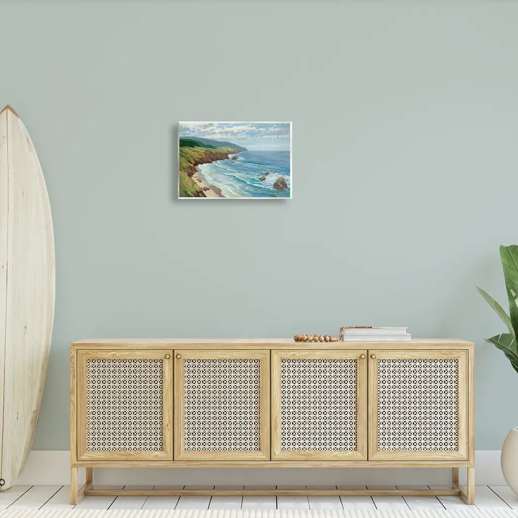 Our wall plaques start as high-quality lithograph prints mounted on durable 0.5-inch thick MDF wood. Each piece is hand finished and comes with a fresh layer of white foil on the sides to give it a crisp, clean look. Plaques arrive ready to hang without installation and come with removable plastic corners to keep them from damage in transit. Stupell Wall Art is made in the USA.Features: Dimensions: 15 x 0.5 x 10 InchesWall Plaque Product Sizes Include 15"x10" and 19"x13". All wall plaque products have a 0.5" Depth. Wall Art is Ready to Hang with Hardware Free Hanging. No installation required. For Easy Set Up Lean or Layer Artwork on Shelf or Against Wall.All of our wall plaques start off as high quality lithograph prints that are then mounted on durable 0.5 inch thick MDF wood. Each piece is hand finished and comes with a fresh layer of foil on the sides to give it a crisp clean look. Made In USA.Artwork Relates To: Nature, Water, Sea, Painting, Shoreline, Coast, Beach, Scenery, Landscape, Sea Waves, Cove, CliffDesign by Scott Brems
