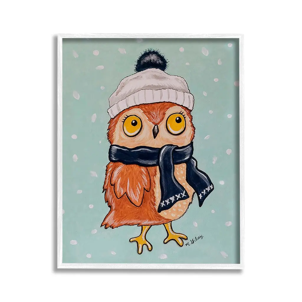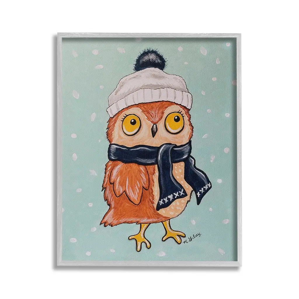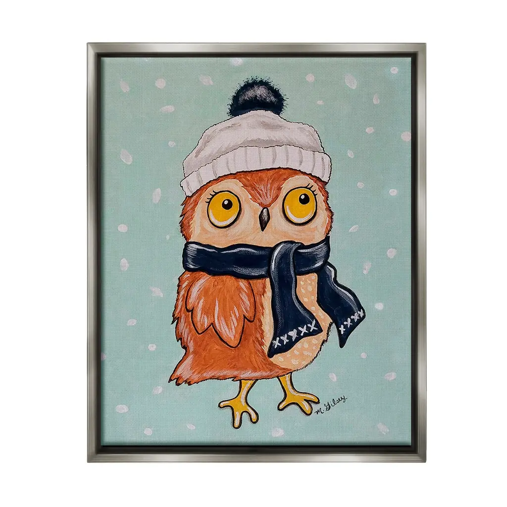 Elevate your home or office to the next level with Stupell Framed Floating Canvas Wall Art. Our premium hand-stretched canvas is mounted securely into a sturdy lightweight frame. The museum-style gap between the wrapped canvas and the box frame gives the illusion of floating artwork. Stupell Wall Art is made in the USA.Features: Dimensions: 17 x 1.7 x 21 Frame, 16 x 1.5 x 20 Canvas ArtFloating Frame Canvas Products are available in sizes 17"x21" and 25"x31". All Floating Frame Canvas Products have a 1.7" Depth.Wall Art is Ready to Hang with Hardware Free Hanging. No Installation required. For Easy Set Up Lean or Layer Artwork on Shelf or Against Wall. Artwork is Permently Fixed into the Frame.Our elevated 1.7" Thick Floating Frame is the perfect complement to our canvas style Wall Art. We use only the highest quality inks in house with industry leading printing solutions. Canvas is hand stretched over a durable wood foundation and then mounted securly into a Modern Box Frame. Made in the USA.Artwork Relates To: Animal, Bird, Owl, Winter, Scarf, Hat, Snow, PatternDesign by Michelle Gilsey