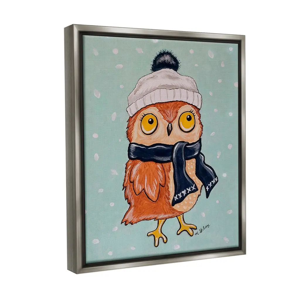 Elevate your home or office to the next level with Stupell Framed Floating Canvas Wall Art. Our premium hand-stretched canvas is mounted securely into a sturdy lightweight frame. The museum-style gap between the wrapped canvas and the box frame gives the illusion of floating artwork. Stupell Wall Art is made in the USA.Features: Dimensions: 17 x 1.7 x 21 Frame, 16 x 1.5 x 20 Canvas ArtFloating Frame Canvas Products are available in sizes 17"x21" and 25"x31". All Floating Frame Canvas Products have a 1.7" Depth.Wall Art is Ready to Hang with Hardware Free Hanging. No Installation required. For Easy Set Up Lean or Layer Artwork on Shelf or Against Wall. Artwork is Permently Fixed into the Frame.Our elevated 1.7" Thick Floating Frame is the perfect complement to our canvas style Wall Art. We use only the highest quality inks in house with industry leading printing solutions. Canvas is hand stretched over a durable wood foundation and then mounted securly into a Modern Box Frame. Made in the USA.Artwork Relates To: Animal, Bird, Owl, Winter, Scarf, Hat, Snow, PatternDesign by Michelle Gilsey