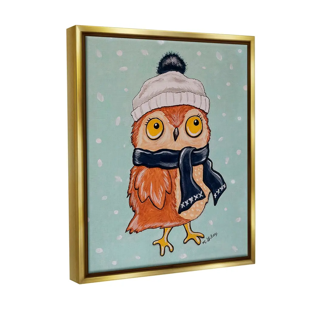 Elevate your home or office to the next level with Stupell Framed Floating Canvas Wall Art. Our premium hand-stretched canvas is mounted securely into a sturdy lightweight frame. The museum-style gap between the wrapped canvas and the box frame gives the illusion of floating artwork. Stupell Wall Art is made in the USA.Features: Dimensions: 17 x 1.7 x 21 Frame, 16 x 1.5 x 20 Canvas ArtFloating Frame Canvas Products are available in sizes 17"x21" and 25"x31". All Floating Frame Canvas Products have a 1.7" Depth.Wall Art is Ready to Hang with Hardware Free Hanging. No Installation required. For Easy Set Up Lean or Layer Artwork on Shelf or Against Wall. Artwork is Permently Fixed into the Frame.Our elevated 1.7" Thick Floating Frame is the perfect complement to our canvas style Wall Art. We use only the highest quality inks in house with industry leading printing solutions. Canvas is hand stretched over a durable wood foundation and then mounted securly into a Modern Box Frame. Made in the USA.Artwork Relates To: Animal, Bird, Owl, Winter, Scarf, Hat, Snow, PatternDesign by Michelle Gilsey