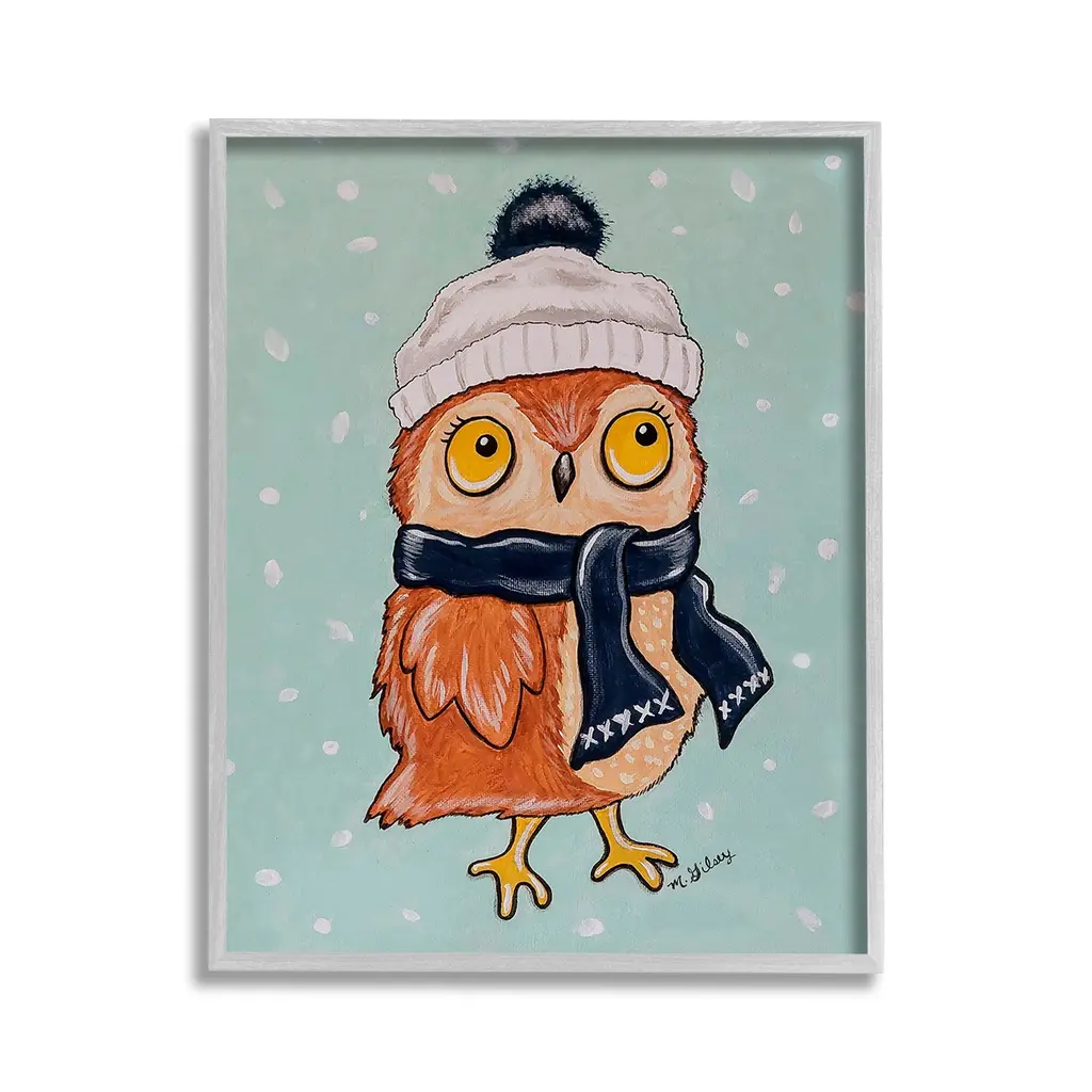 Our wall plaques start as high-quality lithograph prints mounted on durable 0.5-inch thick MDF wood. Each piece is hand finished and comes with a fresh layer of white foil on the sides to give it a crisp, clean look. Plaques arrive ready to hang without installation and come with removable plastic corners to keep them from damage in transit. Stupell Wall Art is made in the USA.Features: Dimensions: 10 x 0.5 x 15 InchesWall Plaque Product Sizes Include 10"x15" and 13"x19". All wall plaque products have a 0.5" Depth. Wall Art is Ready to Hang with Hardware Free Hanging. No installation required. For Easy Set Up Lean or Layer Artwork on Shelf or Against Wall.All of our wall plaques start off as high quality lithograph prints that are then mounted on durable 0.5 inch thick MDF wood. Each piece is hand finished and comes with a fresh layer of foil on the sides to give it a crisp clean look. Made In USA.Artwork Relates To: Animal, Bird, Owl, Winter, Scarf, Hat, Snow, PatternDesign by Michelle Gilsey