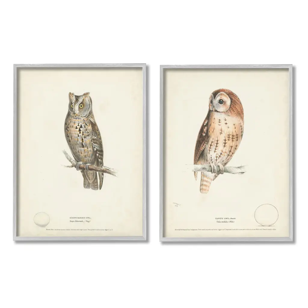 Stupell Owl Breeds Latin Study Page Detailed Bird Animal 2 Piece Framed Wall Art, Design By H. L. Meyer - 24 X 30 - White