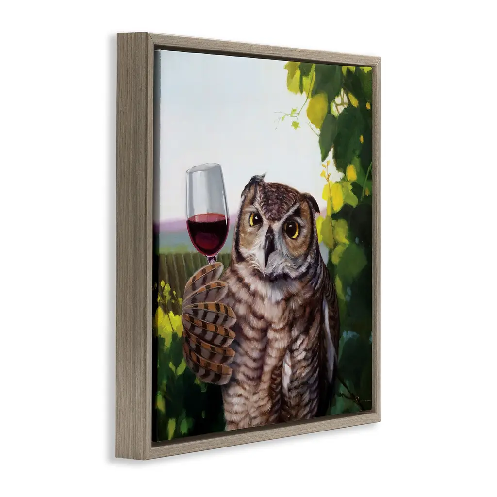 Elevate your home or office to the next level with Stupell Framed Floating Canvas Wall Art. Our premium hand-stretched canvas is mounted securely into a sturdy lightweight frame. The museum-style gap between the wrapped canvas and the box frame gives the illusion of floating artwork. Stupell Wall Art is made in the USA.Features: Dimensions: 18 x 1.7 x 18 Frame, 17 x 1.5 x 17 Canvas ArtFloating Frame Canvas Products are available in sizes 18"x18" and 25"x25". All Floating Frame Canvas Products have a 1.7" Depth.Wall Art is Ready to Hang with Hardware Free Hanging. No Installation required. For Easy Set Up Lean or Layer Artwork on Shelf or Against Wall. Artwork is Permently Fixed into the Frame.Our elevated 1.7" Thick Floating Frame is the perfect complement to our canvas style Wall Art. We use only the highest quality inks in house with industry leading printing solutions. Canvas is hand stretched over a durable wood foundation and then mounted securly into a Modern Box Frame. Made in the USA.Artwork Relates To: Animal, Humor, Owl, Wine, VineyardDesign by Lucia Heffernan
