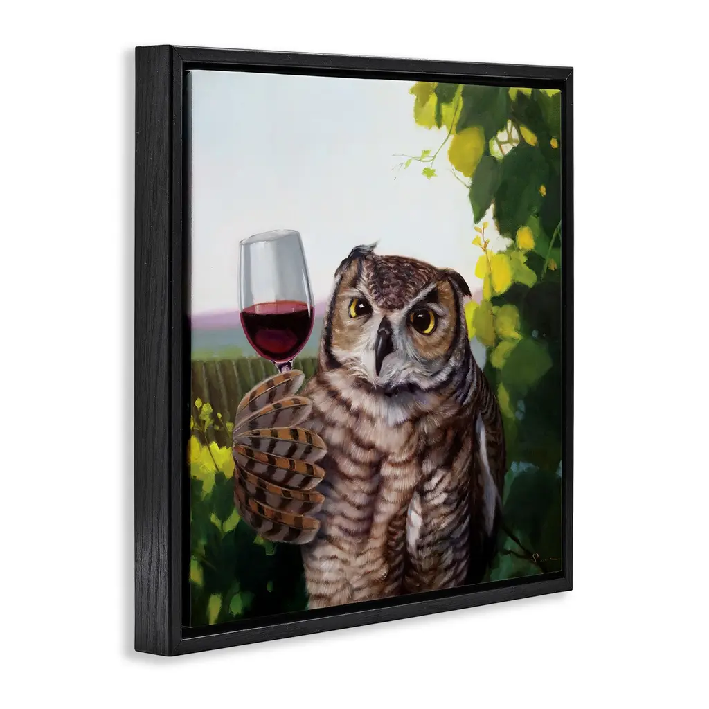 Elevate your home or office to the next level with Stupell Framed Floating Canvas Wall Art. Our premium hand-stretched canvas is mounted securely into a sturdy lightweight frame. The museum-style gap between the wrapped canvas and the box frame gives the illusion of floating artwork. Stupell Wall Art is made in the USA.Features: Dimensions: 18 x 1.7 x 18 Frame, 17 x 1.5 x 17 Canvas ArtFloating Frame Canvas Products are available in sizes 18"x18" and 25"x25". All Floating Frame Canvas Products have a 1.7" Depth.Wall Art is Ready to Hang with Hardware Free Hanging. No Installation required. For Easy Set Up Lean or Layer Artwork on Shelf or Against Wall. Artwork is Permently Fixed into the Frame.Our elevated 1.7" Thick Floating Frame is the perfect complement to our canvas style Wall Art. We use only the highest quality inks in house with industry leading printing solutions. Canvas is hand stretched over a durable wood foundation and then mounted securly into a Modern Box Frame. Made in the USA.Artwork Relates To: Animal, Humor, Owl, Wine, VineyardDesign by Lucia Heffernan