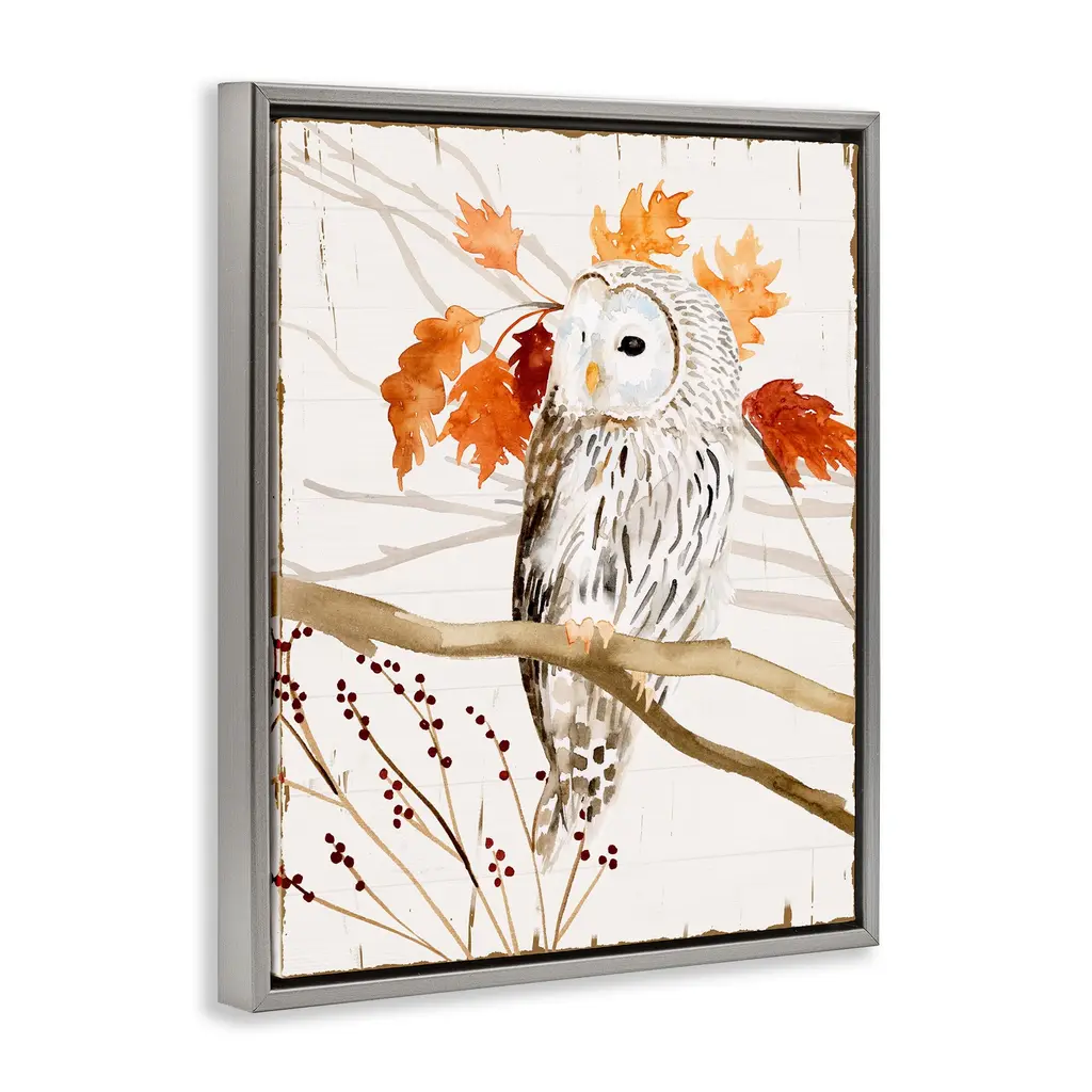 Elevate your home or office to the next level with Stupell Framed Floating Canvas Wall Art. Our premium hand-stretched canvas is mounted securely into a sturdy lightweight frame. The museum-style gap between the wrapped canvas and the box frame gives the illusion of floating artwork. Stupell Wall Art is made in the USA.Features: Dimensions: 17 x 1.7 x 21 Frame, 16 x 1.5 x 20 Canvas ArtFloating Frame Canvas Products are available in sizes 17"x21" and 25"x31". All Floating Frame Canvas Products have a 1.7" Depth.Wall Art is Ready to Hang with Hardware Free Hanging. No Installation required. For Easy Set Up Lean or Layer Artwork on Shelf or Against Wall. Artwork is Permently Fixed into the Frame.Our elevated 1.7" Thick Floating Frame is the perfect complement to our canvas style Wall Art. We use only the highest quality inks in house with industry leading printing solutions. Canvas is hand stretched over a durable wood foundation and then mounted securly into a Modern Box Frame. Made in the USA.Artwork Relates To: Animal, Bird, Owl, Forest, Woodland, Fall, Autumn, Leaf, Branch, BotanicalDesign by Victoria Borges