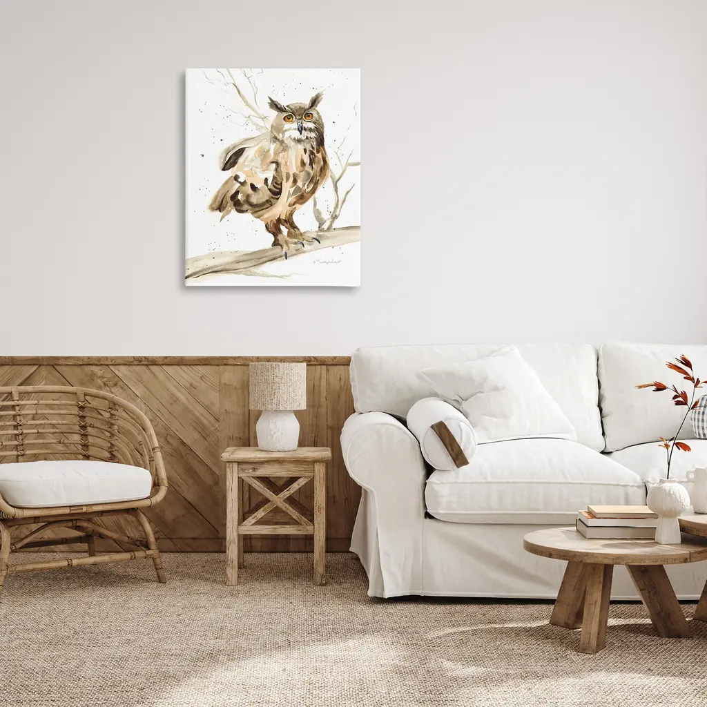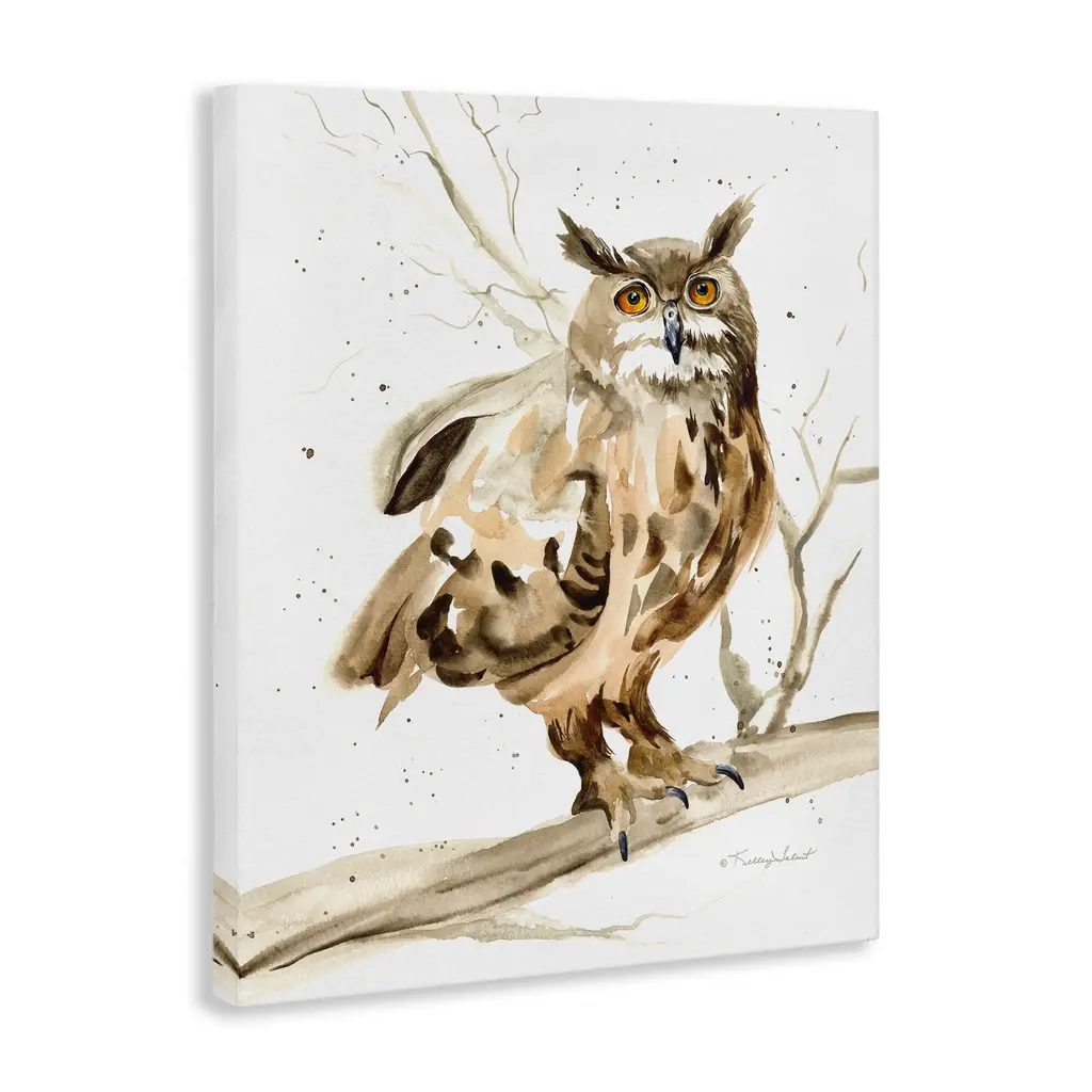 We create our stretched canvas to the highest standards. Using only the highest quality inks and canvas on Mimaki printers, we hand-cut and stretch each piece over a 1.5-inch thick wooden frame for hanging. As a result, the art comes ready to hang on the sturdy ledge with no installation required. Stupell Wall Art is made in the USA.Features: Dimensions: 16 x 1.5 x 20 InchesStretched Canvas Sizes Include Standard: 16 x 1.5 x 20 Large: 20 x 1.5 x 30 X-Large: 30 x 1.5 x 40 Oversized: 36 x 1.5 x 48Wall Art is Ready to Hang with Hardware Free Hanging. No installation required. For Easy Set Up Lean or Layer Artwork on Shelf or Against Wall.Our stretched canvas is created with the highest standards. We use only the highest quality inks and canvas on our in house Mimaki printers, and then hand cut and stretch each piece over a 1.5 inch thick wooden frame for hanging. Made In USA.Artwork Relates To: Animal, Bird, Owl, Painting, Branch, TreeDesign by Kelley Talent
