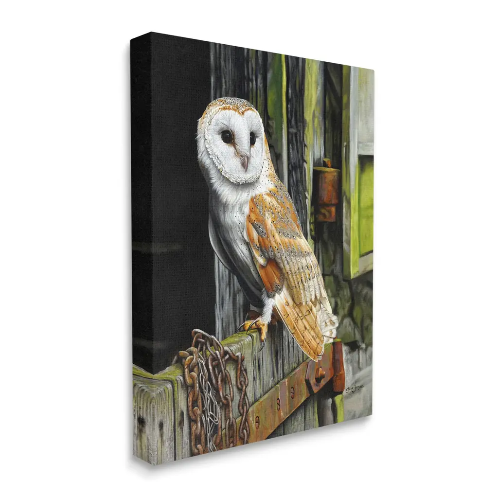 We create our stretched canvas to the highest standards. Using only the highest quality inks and canvas on Mimaki printers, we hand-cut and stretch each piece over a 1.5-inch thick wooden frame for hanging. As a result, the art comes ready to hang on the sturdy ledge with no installation required. Stupell Wall Art is made in the USA.Features: Dimensions: 16 x 1.5 x 20 InchesStretched Canvas Sizes Include Standard: 16 x 1.5 x 20 Large: 20 x 1.5 x 30 X-Large: 30 x 1.5 x 40 Oversized: 36 x 1.5 x 48Wall Art is Ready to Hang with Hardware Free Hanging. No installation required. For Easy Set Up Lean or Layer Artwork on Shelf or Against Wall.Our stretched canvas is created with the highest standards. We use only the highest quality inks and canvas on our in house Mimaki printers, and then hand cut and stretch each piece over a 1.5 inch thick wooden frame for hanging. Made In USA.Artwork Relates To: Animal, Bird, Owl, Beak, Rust, Barn Owl, PaintingDesign by Steve Burgess