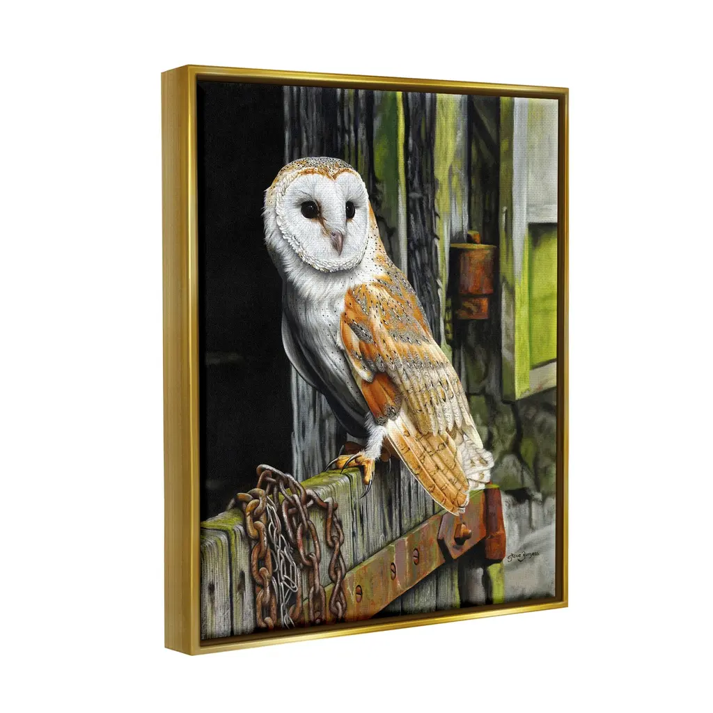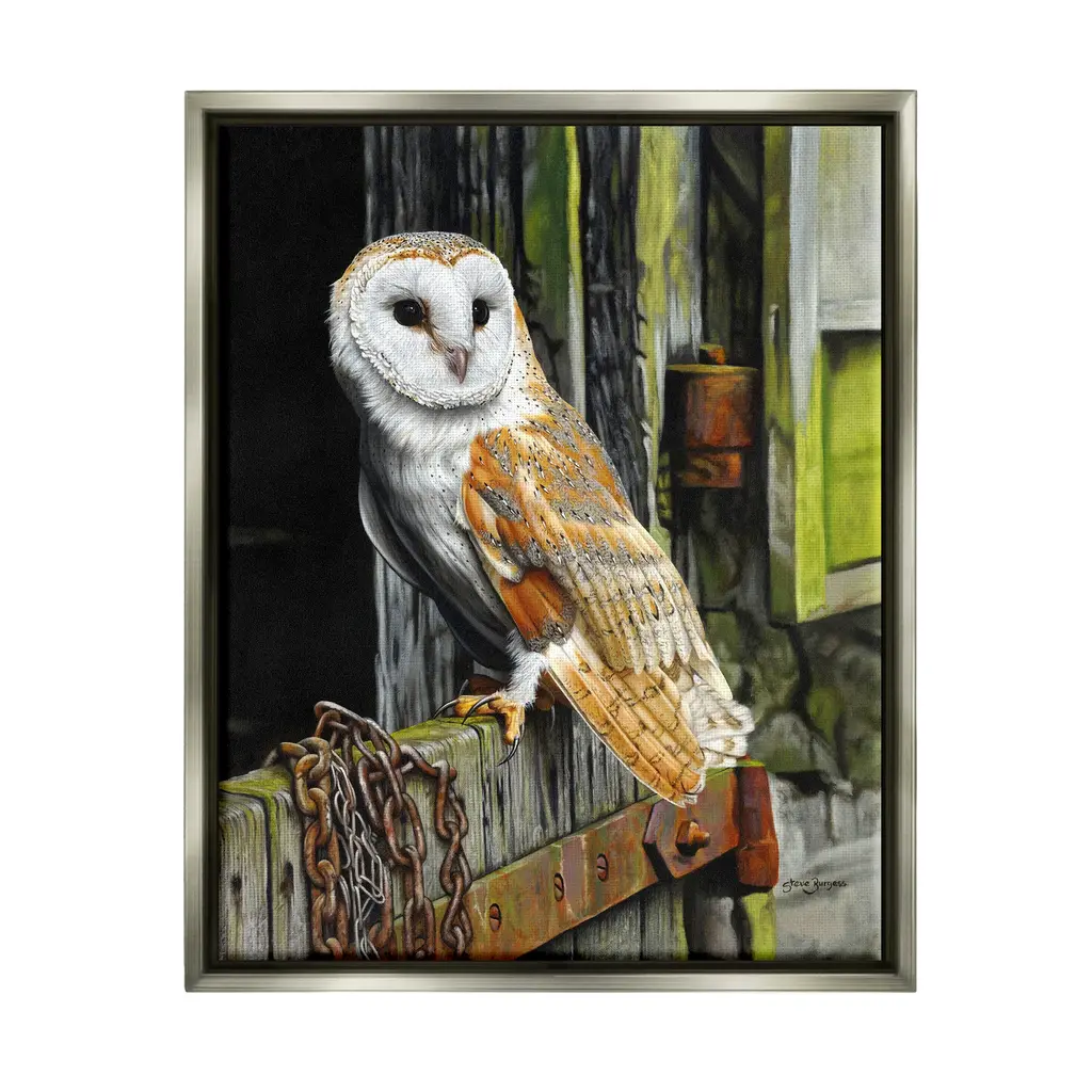 Elevate your home or office to the next level with Stupell Framed Floating Canvas Wall Art. Our premium hand-stretched canvas is mounted securely into a sturdy lightweight frame. The museum-style gap between the wrapped canvas and the box frame gives the illusion of floating artwork. Stupell Wall Art is made in the USA.Features: Dimensions: 17 x 1.7 x 21 Frame, 16 x 1.5 x 20 Canvas ArtFloating Frame Sizes Include Standard: 17 x 1.7 x 21 Oversized: 25 x 1.7 x 31Wall Art is Ready to Hang with Hardware Free Hanging. No installation required. For Easy Set Up Lean or Layer Artwork on Shelf or Against Wall.Our elevated 1.7" Thick Floating Frame is the perfect complement to our canvas style Wall Art. We use only the highest quality inks in house with industry leading printing solutions. Canvas is hand stretched over a durable wood foundation and then mounted securly into a Modern Box Frame. Made in the USA.Artwork Relates To: Animal, Bird, Owl, Beak, Rust, Barn Owl, PaintingDesign by Steve Burgess