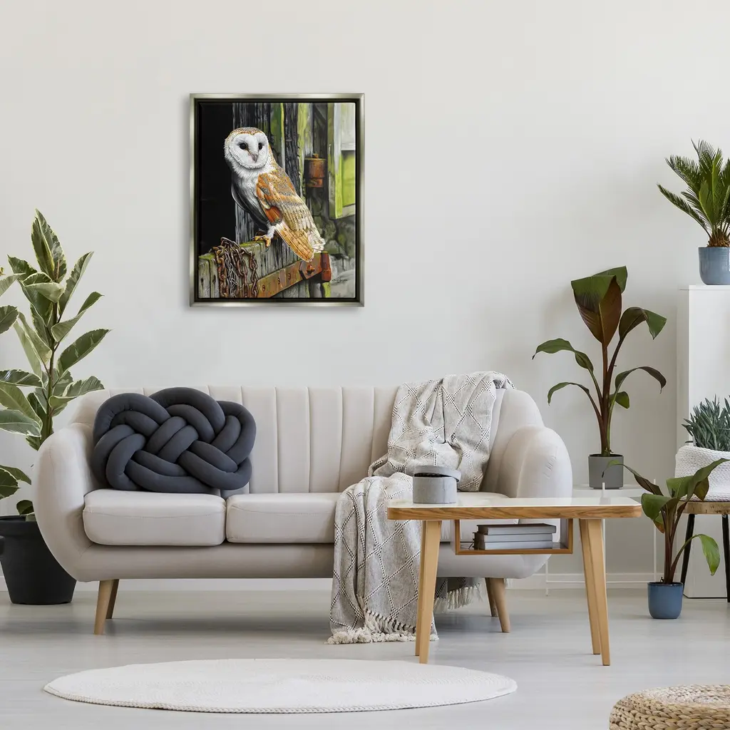 Elevate your home or office to the next level with Stupell Framed Floating Canvas Wall Art. Our premium hand-stretched canvas is mounted securely into a sturdy lightweight frame. The museum-style gap between the wrapped canvas and the box frame gives the illusion of floating artwork. Stupell Wall Art is made in the USA.Features: Dimensions: 17 x 1.7 x 21 Frame, 16 x 1.5 x 20 Canvas ArtFloating Frame Sizes Include Standard: 17 x 1.7 x 21 Oversized: 25 x 1.7 x 31Wall Art is Ready to Hang with Hardware Free Hanging. No installation required. For Easy Set Up Lean or Layer Artwork on Shelf or Against Wall.Our elevated 1.7" Thick Floating Frame is the perfect complement to our canvas style Wall Art. We use only the highest quality inks in house with industry leading printing solutions. Canvas is hand stretched over a durable wood foundation and then mounted securly into a Modern Box Frame. Made in the USA.Artwork Relates To: Animal, Bird, Owl, Beak, Rust, Barn Owl, PaintingDesign by Steve Burgess