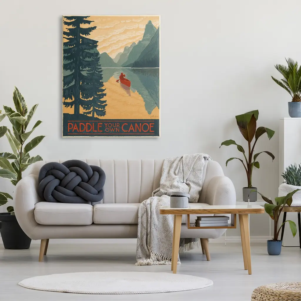 Stupell Paddle Your Own Canoe Phrase Mountain Lake Adventure Canvas Wall Art - Green - 36 X 48