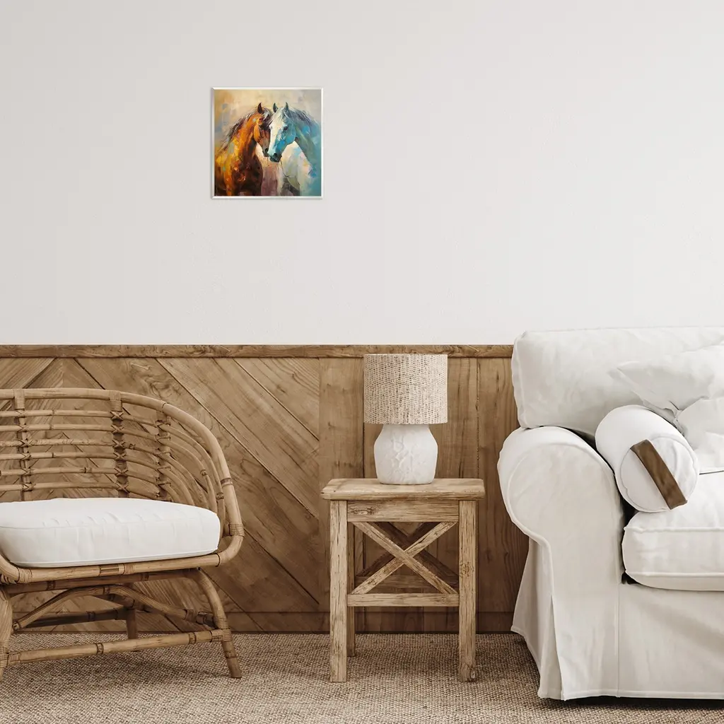 Our wall plaques start as high-quality lithograph prints mounted on durable 0.5-inch thick MDF wood. Each piece is hand finished and comes with a fresh layer of white foil on the sides to give it a crisp, clean look. Plaques arrive ready to hang without installation and come with removable plastic corners to keep them from damage in transit. Stupell Wall Art is made in the USA.Features: Dimensions: 12 x 0.5 x 12 InchesWall Art is Ready to Hang with Hardware Free Hanging. No installation required. For Easy Set Up Lean or Layer Artwork on Shelf or Against Wall.All of our wall plaques start off as high quality lithograph prints that are then mounted on durable 0.5 inch thick MDF wood. Each piece is hand finished and comes with a fresh layer of foil on the sides to give it a crisp clean look. Made In USA.Artwork Relates To: Modern, Painting, Animal, Horse, Mammal, Southwestern, FarmDesign by Irena Orlov