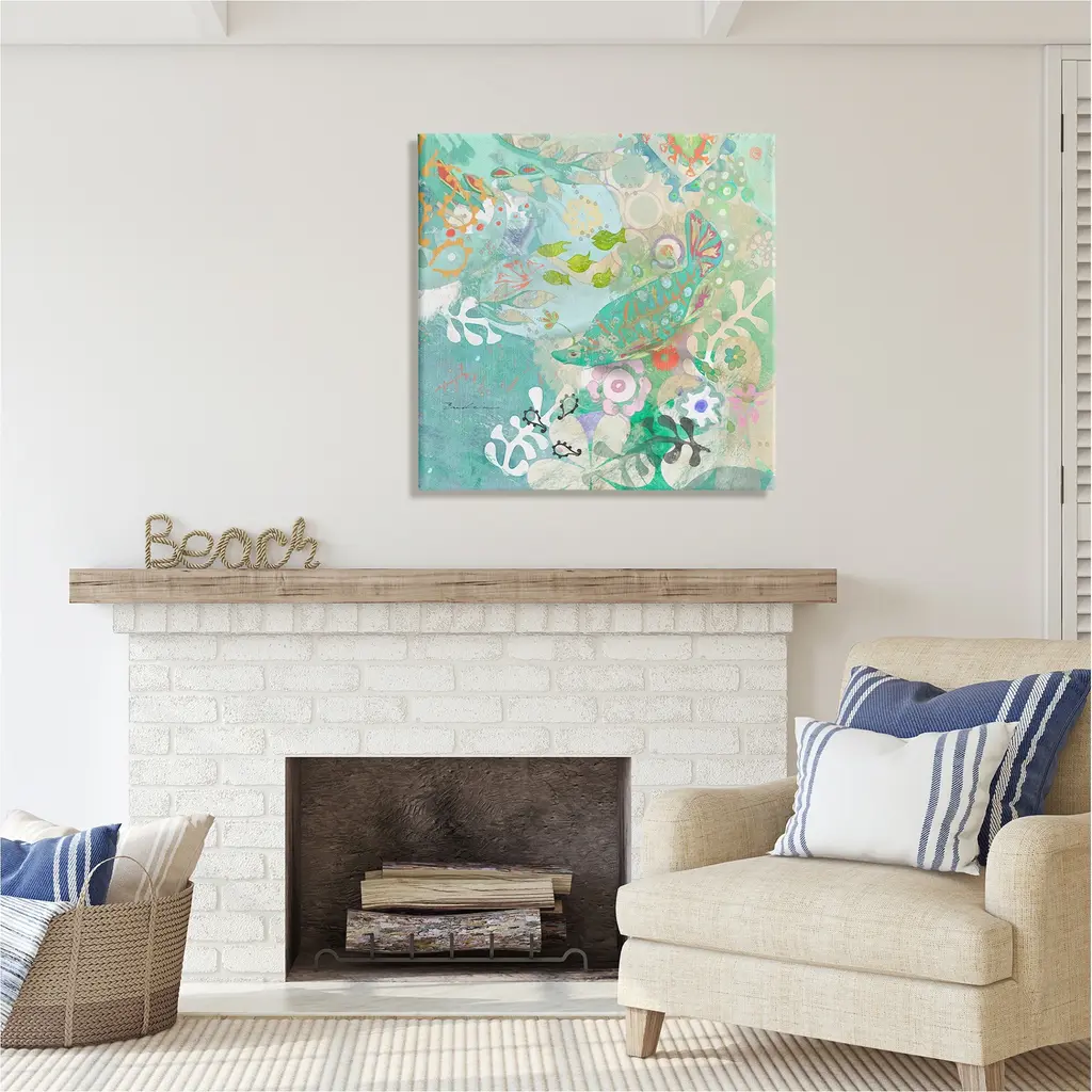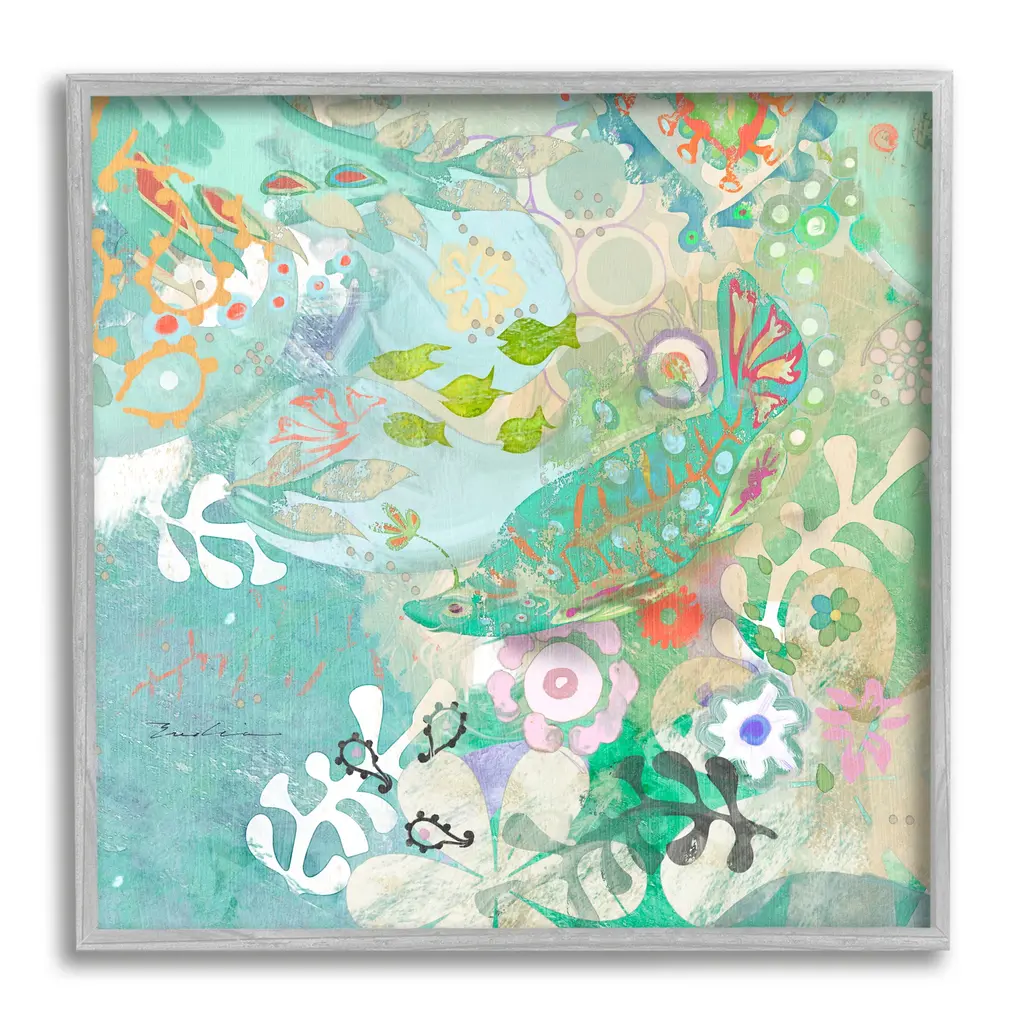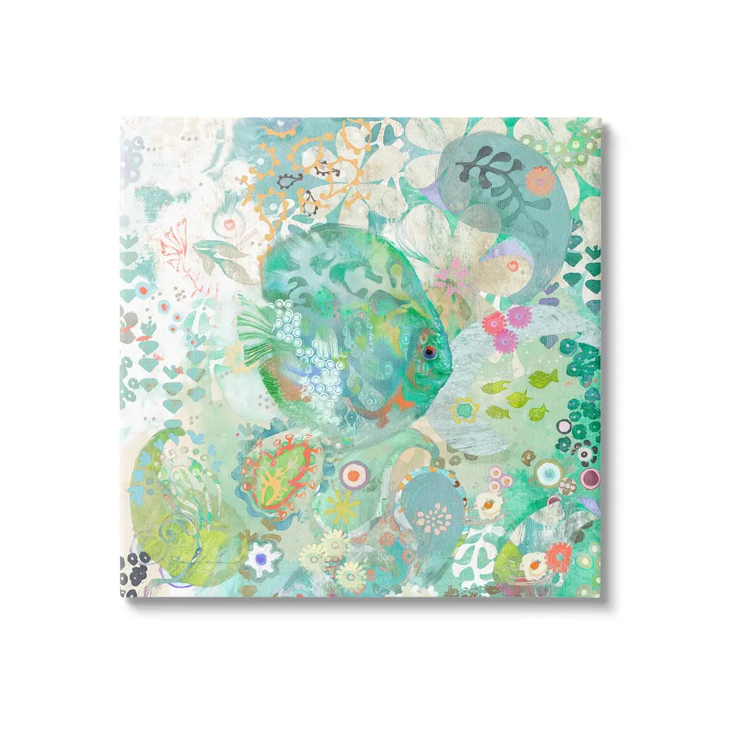 We create our stretched canvas to the highest standards. Using only the highest quality inks and canvas on Mimaki printers, we hand-cut and stretch each piece over a 1.5-inch thick wooden frame for hanging. As a result, the art comes ready to hang on the sturdy ledge with no installation required. Stupell Wall Art is made in the USA.Features: Dimensions: 17 x 1.5 x 17 InchesStretched Canvas Sizes Include Standard: 17 x 1.5 x 17 Large: 24 x 1.5 x 24 X-Large: 30 x 1.5 x 30 Oversized: 36 x 1.5 x 36Wall Art is Ready to Hang with Hardware Free Hanging. No installation required. For Easy Set Up Lean or Layer Artwork on Shelf or Against Wall.Our stretched canvas is created with the highest standards. We use only the highest quality inks and canvas on our in house Mimaki printers, and then hand cut and stretch each piece over a 1.5 inch thick wooden frame for hanging. Made In USA.Artwork Relates To: Pattern, Collage, Floral, Animal, Fish, Sea, ModernDesign by Evelia Designs