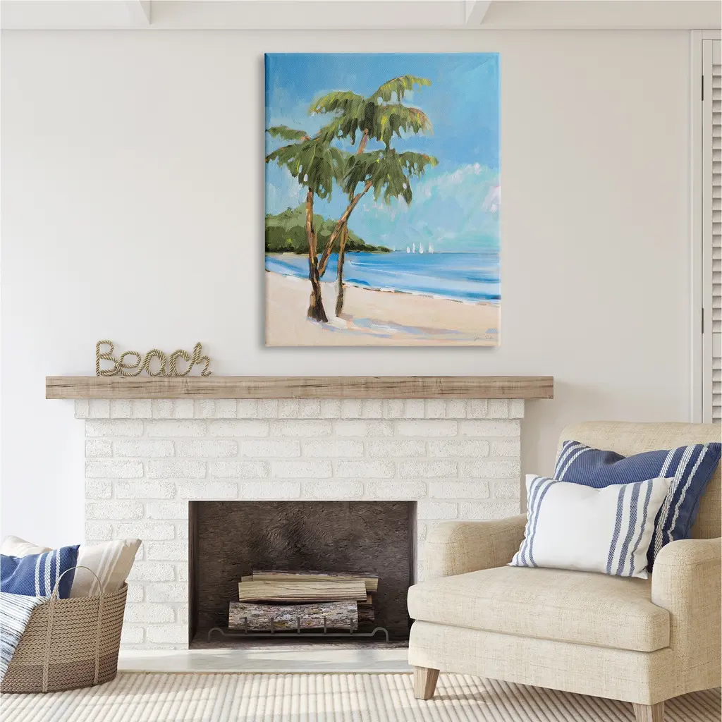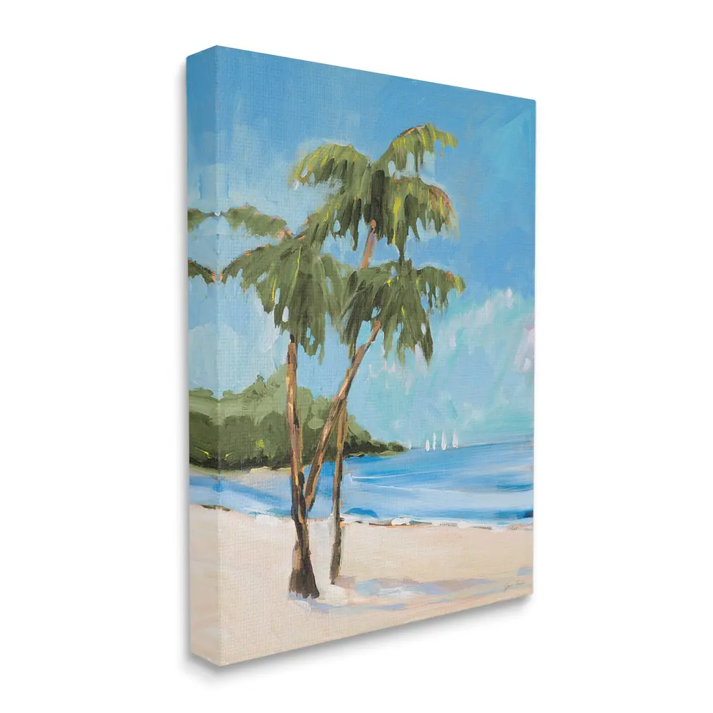 We create our stretched canvas to the highest standards. Using only the highest quality inks and canvas on Mimaki printers, we hand-cut and stretch each piece over a 1.5-inch thick wooden frame for hanging. As a result, the art comes ready to hang on the sturdy ledge with no installation required. Stupell Wall Art is made in the USA.Features: Dimensions: 16 x 1.5 x 20 InchesStretched Canvas Sizes Include Standard: 16 x 1.5 x 20 Large: 20 x 1.5 x 30 X-Large: 30 x 1.5 x 40 Oversized: 36 x 1.5 x 48Wall Art is Ready to Hang with Hardware Free Hanging. No installation required. For Easy Set Up Lean or Layer Artwork on Shelf or Against Wall.Our stretched canvas is created with the highest standards. We use only the highest quality inks and canvas on our in house Mimaki printers, and then hand cut and stretch each piece over a 1.5 inch thick wooden frame for hanging. Made In USA.Artwork Relates To: Painting, Nature, Sea, Water, Plant, Tree, Beach, Coast, Shoreline, Boat, Landscape, Tropical, Vegetation, SummerDesign by Jane Slivka