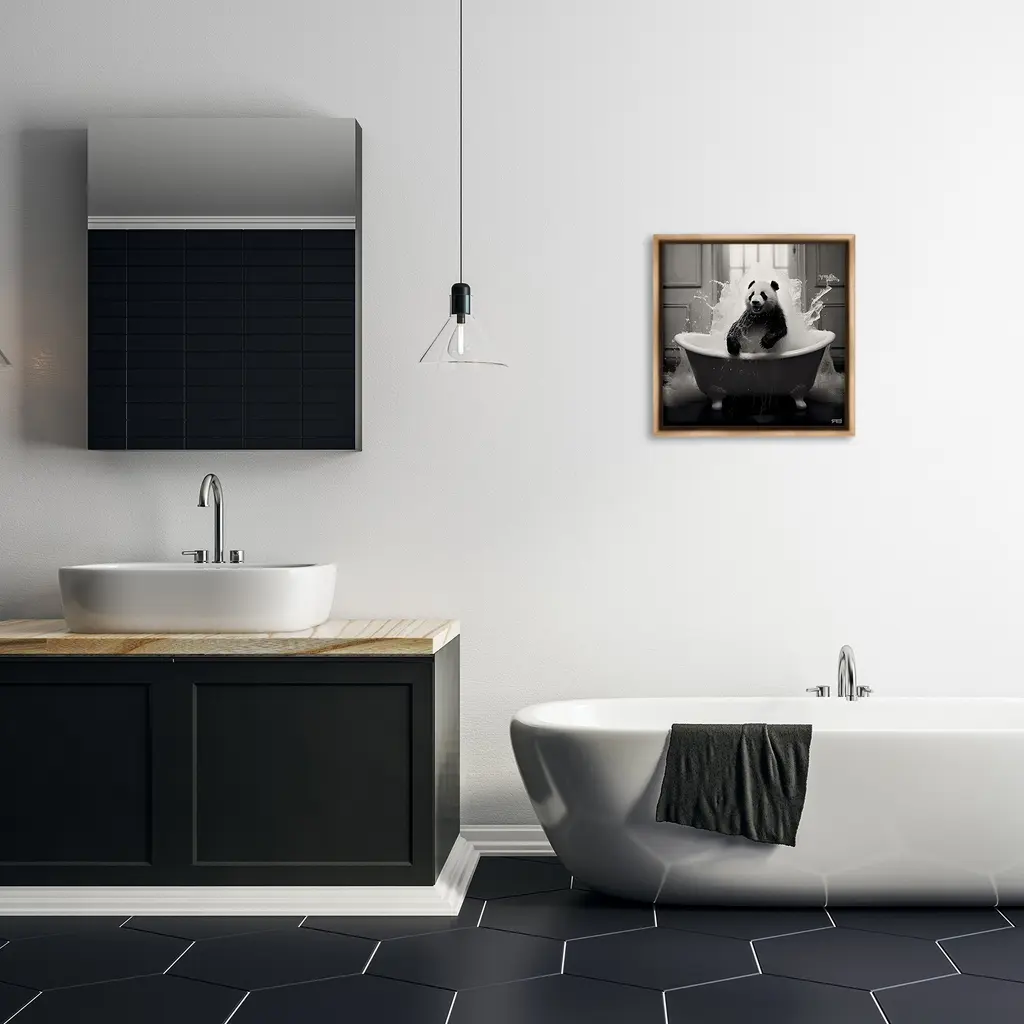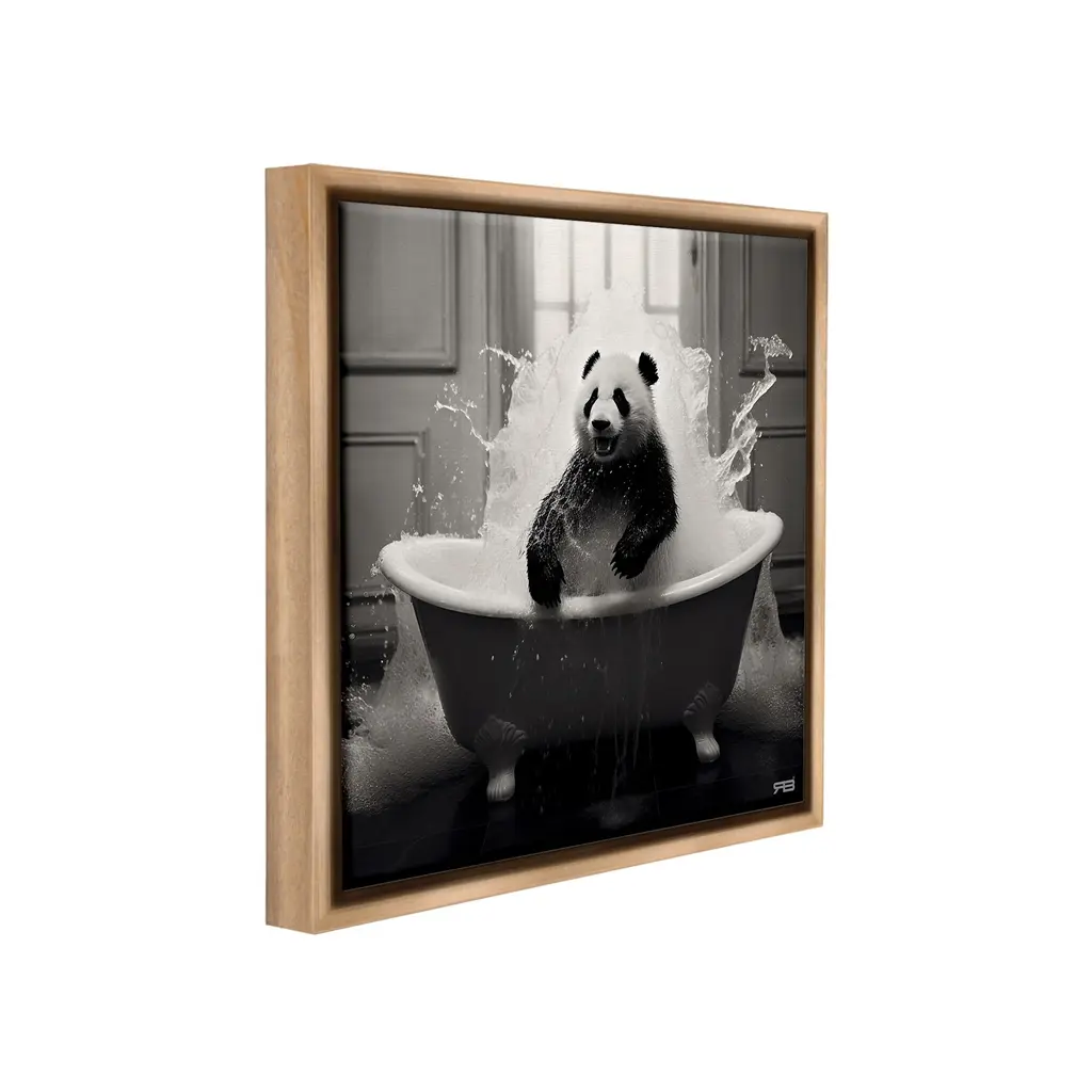 Elevate your home or office to the next level with Stupell Framed Floating Canvas Wall Art. Our premium hand-stretched canvas is mounted securely into a sturdy lightweight frame. The museum-style gap between the wrapped canvas and the box frame gives the illusion of floating artwork. Stupell Wall Art is made in the USA.Features: Dimensions: 18 x 1.7 x 18 Frame, 17 x 1.5 x 17 Canvas ArtFloating Frame Canvas Products are available in sizes 18"x18" and 25"x25". All Floating Frame Canvas Products have a 1.7" Depth.Wall Art is Ready to Hang with Hardware Free Hanging. No Installation required. For Easy Set Up Lean or Layer Artwork on Shelf or Against Wall. Artwork is Permently Fixed into the Frame.Our elevated 1.7" Thick Floating Frame is the perfect complement to our canvas style Wall Art. We use only the highest quality inks in house with industry leading printing solutions. Canvas is hand stretched over a durable wood foundation and then mounted securly into a Modern Box Frame. Made in the USA.Artwork Relates To: Tub, Bathing, Bathtub, Bathroom, Animal, Panda, SplashDesign by RB