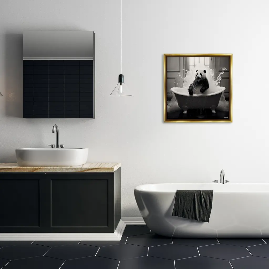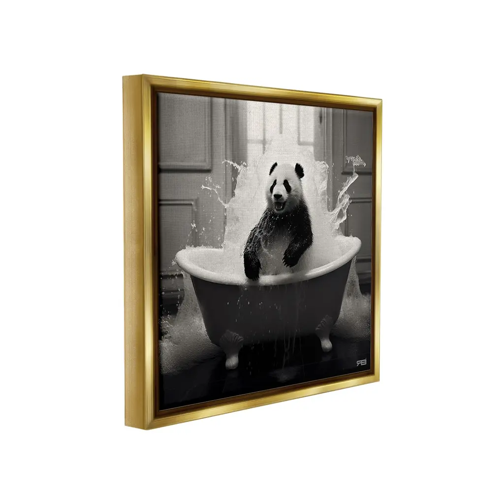 Elevate your home or office to the next level with Stupell Framed Floating Canvas Wall Art. Our premium hand-stretched canvas is mounted securely into a sturdy lightweight frame. The museum-style gap between the wrapped canvas and the box frame gives the illusion of floating artwork. Stupell Wall Art is made in the USA.Features: Dimensions: 18 x 1.7 x 18 Frame, 17 x 1.5 x 17 Canvas ArtFloating Frame Canvas Products are available in sizes 18"x18" and 25"x25". All Floating Frame Canvas Products have a 1.7" Depth.Wall Art is Ready to Hang with Hardware Free Hanging. No Installation required. For Easy Set Up Lean or Layer Artwork on Shelf or Against Wall. Artwork is Permently Fixed into the Frame.Our elevated 1.7" Thick Floating Frame is the perfect complement to our canvas style Wall Art. We use only the highest quality inks in house with industry leading printing solutions. Canvas is hand stretched over a durable wood foundation and then mounted securly into a Modern Box Frame. Made in the USA.Artwork Relates To: Tub, Bathing, Bathtub, Bathroom, Animal, Panda, SplashDesign by RB