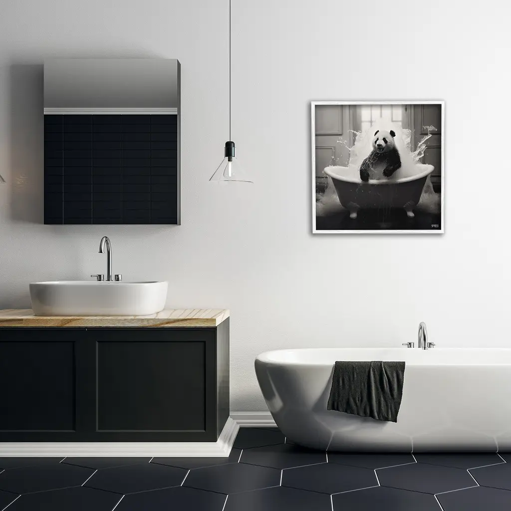 Add dimension to any room with our textured Framed Giclee Artwork. Our framed artwork is securely mounted into a 1.5-inch thick wood grain frame and ready to hang. Frames are available in three alluring styles: black, gray farmhouse and white. In addition, you should check out our oversized options if you want a statement piece. Stupell Wall Art is made in the USA.Features: Dimensions: 12 x 1.5 x 12 FramedFramed Giclee Product Sizes Include 12"x12", 17"x17", and 24"x24". Framed Giclee Products have a 1.5" Depth. Wall Art is Ready to Hang with Hardware Free Hanging. No installation required. For Easy Set Up Lean or Layer Artwork on Shelf or Against Wall.Our giclée prints are carefully mounted on a durable MDF backing, and then perfectly finished in a 1.5 inch thick woodgrain frame. Mounted frame colors include black, gray farmhouse and white. Made In USA.Artwork Relates To: Tub, Bathing, Bathtub, Bathroom, Animal, Panda, SplashDesign by RB