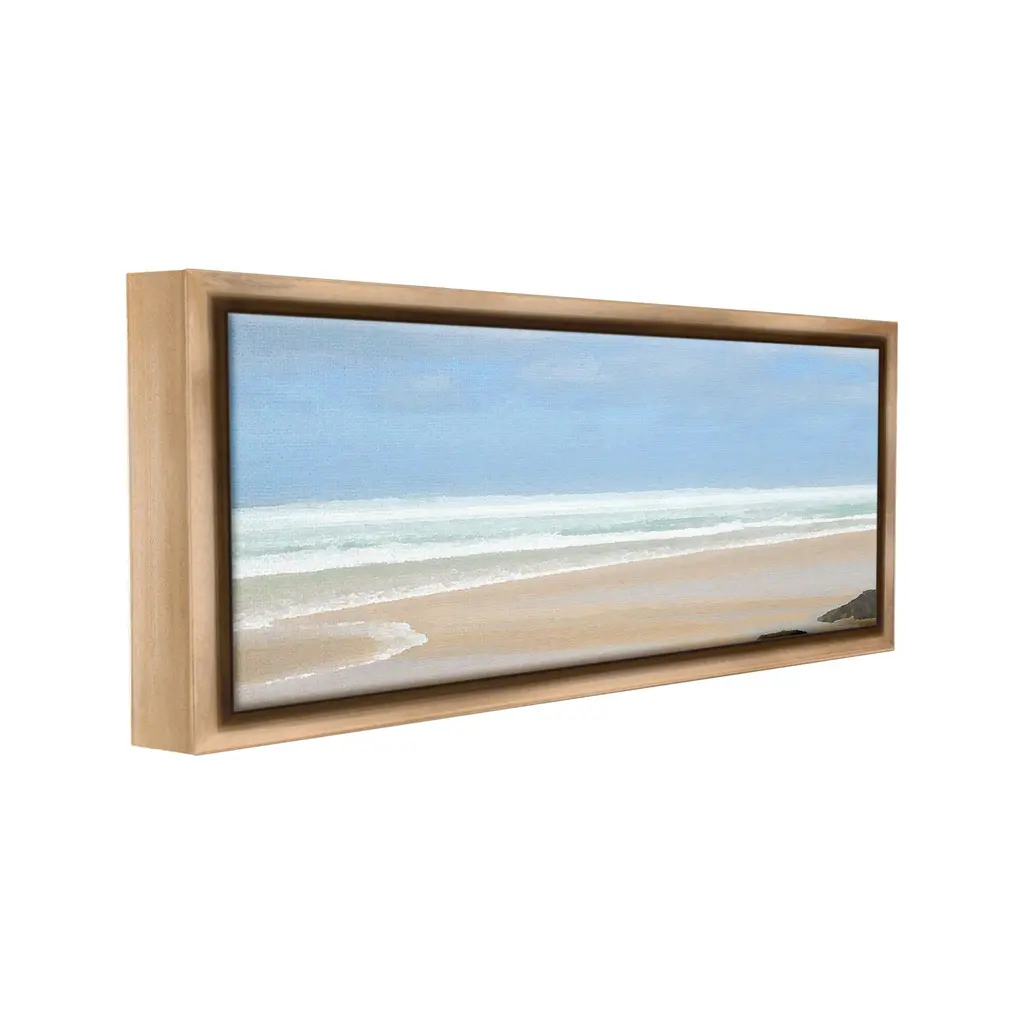 Elevate your home or office to the next level with Stupell Framed Floating Canvas Wall Art. Our premium hand-stretched canvas is mounted securely into a sturdy lightweight frame. The museum-style gap between the wrapped canvas and the box frame gives the illusion of floating artwork. Stupell Wall Art is made in the USA.Features: Dimensions: 25 x 1.7 x 11 Frame, 24 x 1.5 x 10 Canvas ArtFloating Frame Canvas Products are available in sizes 25"x11" and 31"x14". All Floating Frame Canvas Products have a 1.7" Depth.Wall Art is Ready to Hang with Hardware Free Hanging. No Installation required. For Easy Set Up Lean or Layer Artwork on Shelf or Against Wall. Artwork is Permently Fixed into the Frame.Our elevated 1.7" Thick Floating Frame is the perfect complement to our canvas style Wall Art. We use only the highest quality inks in house with industry leading printing solutions. Canvas is hand stretched over a durable wood foundation and then mounted securly into a Modern Box Frame. Made in the USA.Artwork Relates To: Beach, Coast, Sea, Shoreline, Water, Scenery, Sky, Landscape, Horizon, Sea Waves, NauticalDesign by Noah Bay