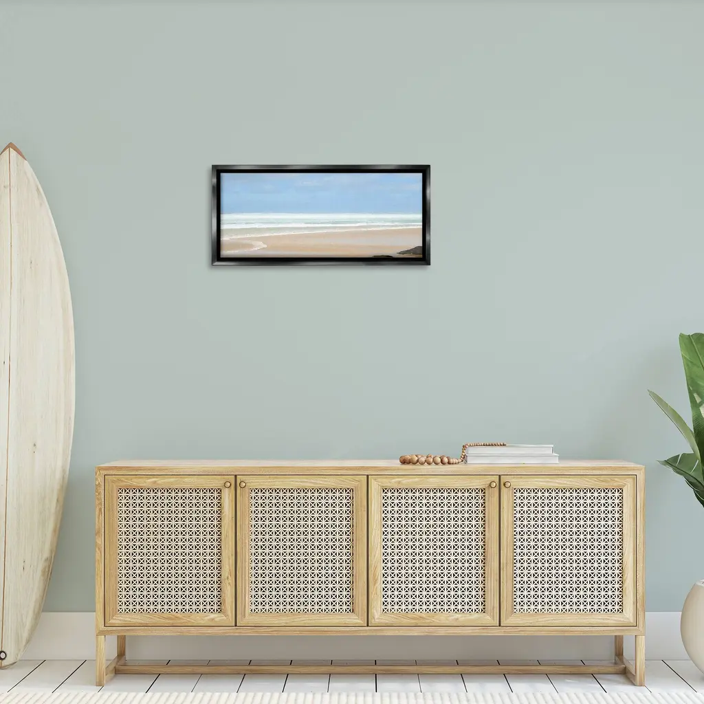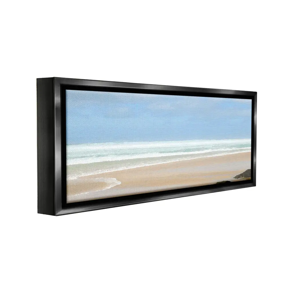 Elevate your home or office to the next level with Stupell Framed Floating Canvas Wall Art. Our premium hand-stretched canvas is mounted securely into a sturdy lightweight frame. The museum-style gap between the wrapped canvas and the box frame gives the illusion of floating artwork. Stupell Wall Art is made in the USA.Features: Dimensions: 25 x 1.7 x 11 Frame, 24 x 1.5 x 10 Canvas ArtFloating Frame Canvas Products are available in sizes 25"x11" and 31"x14". All Floating Frame Canvas Products have a 1.7" Depth.Wall Art is Ready to Hang with Hardware Free Hanging. No Installation required. For Easy Set Up Lean or Layer Artwork on Shelf or Against Wall. Artwork is Permently Fixed into the Frame.Our elevated 1.7" Thick Floating Frame is the perfect complement to our canvas style Wall Art. We use only the highest quality inks in house with industry leading printing solutions. Canvas is hand stretched over a durable wood foundation and then mounted securly into a Modern Box Frame. Made in the USA.Artwork Relates To: Beach, Coast, Sea, Shoreline, Water, Scenery, Sky, Landscape, Horizon, Sea Waves, NauticalDesign by Noah Bay