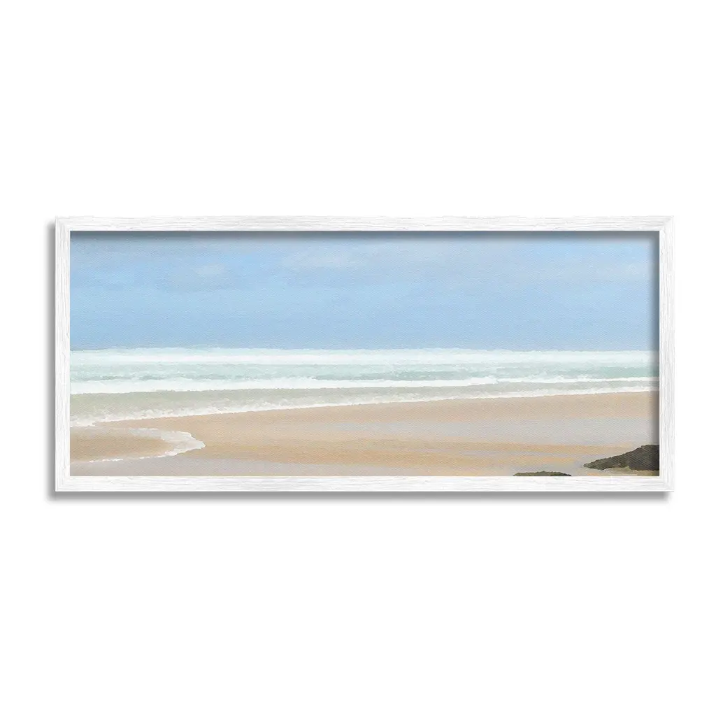Add dimension to any room with our textured Framed Giclee Artwork. Our framed artwork is securely mounted into a 1.5-inch thick wood grain frame and ready to hang. Frames are available in three alluring styles: black, gray farmhouse and white. In addition, you should check out our oversized options if you want a statement piece. Stupell Wall Art is made in the USA.Features: Dimensions: 24 x 1.5 x 10 FramedFramed Giclee Product Sizes include 24"x10" and 30"x13". All Framed Giclee products have a 1.5" Depth.Wall Art is Ready to Hang with Hardware Free Hanging. No installation required. For Easy Set Up Lean or Layer Artwork on Shelf or Against Wall.Our giclée prints are carefully mounted on a durable MDF backing, and then perfectly finished in a 1.5 inch thick woodgrain frame. Mounted frame colors include black, gray farmhouse and white. Made In USA.Artwork Relates To: Beach, Coast, Sea, Shoreline, Water, Scenery, Sky, Landscape, Horizon, Sea Waves, NauticalDesign by Noah Bay