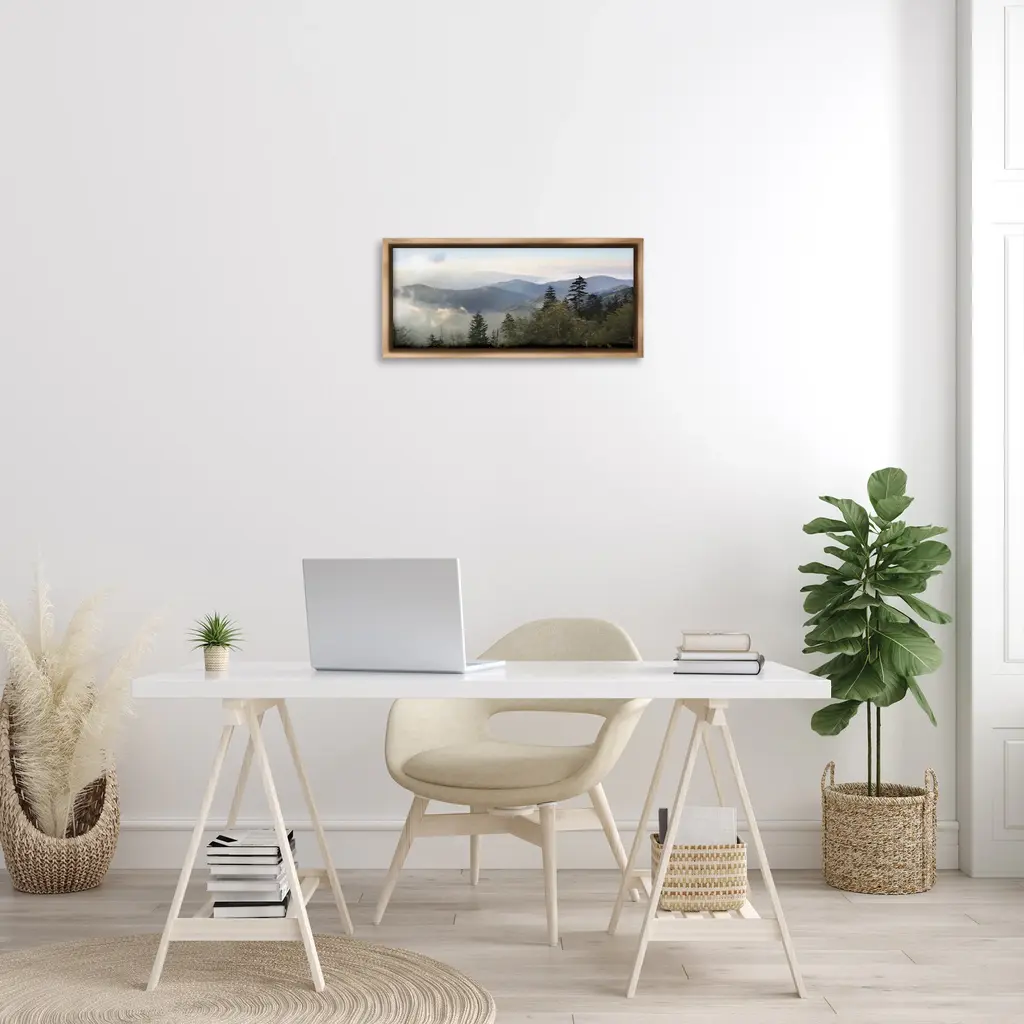 Elevate your home or office to the next level with Stupell Framed Floating Canvas Wall Art. Our premium hand-stretched canvas is mounted securely into a sturdy lightweight frame. The museum-style gap between the wrapped canvas and the box frame gives the illusion of floating artwork. Stupell Wall Art is made in the USA.Features: Dimensions: 25 x 1.7 x 11 Frame, 24 x 1.5 x 10 Canvas ArtFloating Frame Canvas Products are available in sizes 25"x11" and 31"x14". All Floating Frame Canvas Products have a 1.7" Depth.Wall Art is Ready to Hang with Hardware Free Hanging. No Installation required. For Easy Set Up Lean or Layer Artwork on Shelf or Against Wall. Artwork is Permently Fixed into the Frame.Our elevated 1.7" Thick Floating Frame is the perfect complement to our canvas style Wall Art. We use only the highest quality inks in house with industry leading printing solutions. Canvas is hand stretched over a durable wood foundation and then mounted securly into a Modern Box Frame. Made in the USA.Artwork Relates To: Tree, Nature, Scenery, Land, Woodland, Landscape, Mountain, PanoramicDesign by Lori Deiter