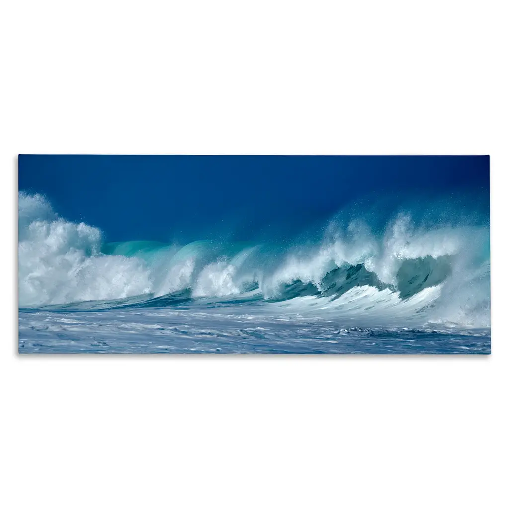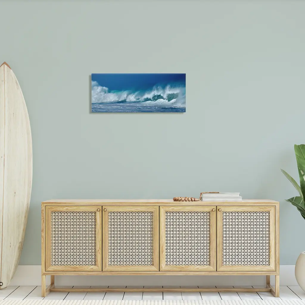 Stupell Panoramic Tsunami Rough Ocean Waves Water Splashing Canvas Wall Art - 13 X 30