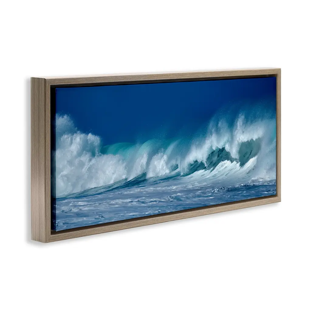 Elevate your home or office to the next level with Stupell Framed Floating Canvas Wall Art. Our premium hand-stretched canvas is mounted securely into a sturdy lightweight frame. The museum-style gap between the wrapped canvas and the box frame gives the illusion of floating artwork. Stupell Wall Art is made in the USA.Features: Dimensions: 25 x 1.7 x 11 Frame, 24 x 1.5 x 10 Canvas ArtFloating Frame Canvas Products are available in sizes 25"x11" and 31"x14". All Floating Frame Canvas Products have a 1.7" Depth.Wall Art is Ready to Hang with Hardware Free Hanging. No Installation required. For Easy Set Up Lean or Layer Artwork on Shelf or Against Wall. Artwork is Permently Fixed into the Frame.Our elevated 1.7" Thick Floating Frame is the perfect complement to our canvas style Wall Art. We use only the highest quality inks in house with industry leading printing solutions. Canvas is hand stretched over a durable wood foundation and then mounted securly into a Modern Box Frame. Made in the USA.Artwork Relates To: Sea, Ocean, Water, Tsunami, Sea Waves, NauticalDesign by Dennis Frates