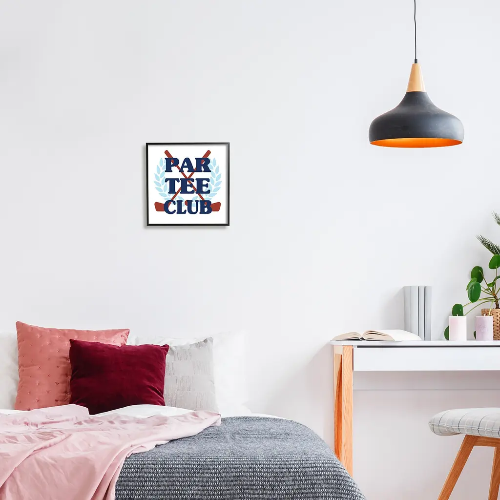 Add dimension to any room with our textured Framed Giclee Artwork. Our framed artwork is securely mounted into a 1.5-inch thick wood grain frame and ready to hang. Frames are available in three alluring styles: black, gray farmhouse and white. In addition, you should check out our oversized options if you want a statement piece. Stupell Wall Art is made in the USA.Features: Dimensions: 12 x 1.5 x 12 FramedFramed Giclee Sizes Include Standard: 12 x 1.5 x 12 Large: 17 x 1.5 x 17 Oversized: 24 x 1.5 x 24Wall Art is Ready to Hang - No Installation or Hardware Needed. For Easy Set Up Lean or Layer Artwork on Shelf or Against Wall.Our giclée prints are carefully mounted on a durable MDF backing, and then perfectly finished in a 1.5 inch thick woodgrain frame. Mounted frame colors include black, gray farmhouse and white. Made In USA.Artwork Relates To: Croquet, Sports, Laurel, Pastel, Par Tee ClubDesign by Lil' Rue