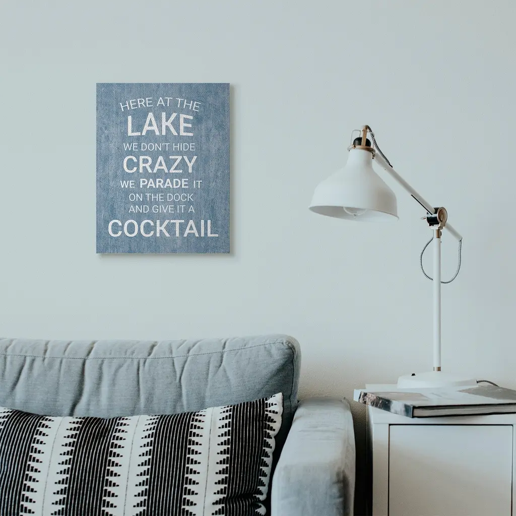 Stupell Parade Crazy Funny Lake Party Blue Wood Texture Word Design Canvas Wall Art - 36 X 48