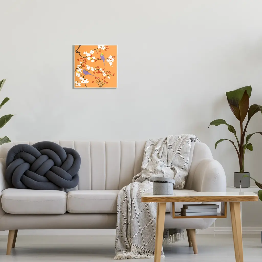 Stupell Parakeets On Orange Wall Plaque Art Evelia Designs - 12 X 12