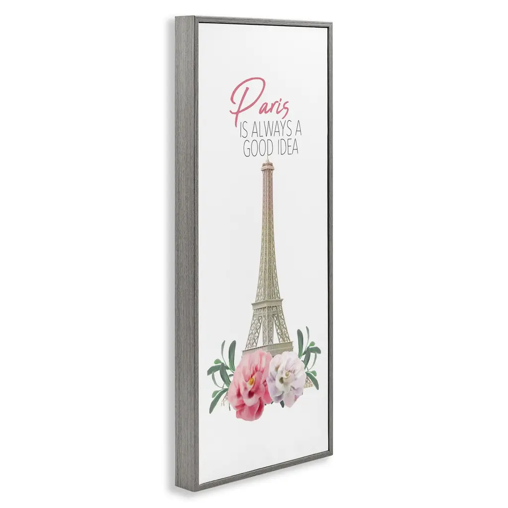 Add dimension to any room with our textured Framed Giclee Artwork. Our framed artwork is securely mounted into a 1.5-inch thick wood grain frame and ready to hang. Frames are available in three alluring styles: black, gray farmhouse and white. In addition, you should check out our oversized options if you want a statement piece. Stupell Wall Art is made in the USA.Features: Dimensions: 10 x 1.5 x 24 FramedFramed Giclee Product Sizes include 10"x24" and 13"x30". All Framed Giclee products have a 1.5" Depth.Wall Art is Ready to Hang with Hardware Free Hanging. No installation required. For Easy Set Up Lean or Layer Artwork on Shelf or Against Wall.Our giclée prints are carefully mounted on a durable MDF backing, and then perfectly finished in a 1.5 inch thick woodgrain frame. Mounted frame colors include black, gray farmhouse and white. Made In USA.Artwork Relates To: Glam, Travel, Paris, France, FloralDesign by Kim Allen