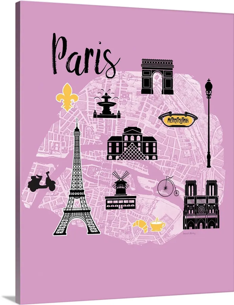 Stupell Paris Landmark Map French City Illustration Pink Grey Framed Wall Art - 16 X 20 - Grey