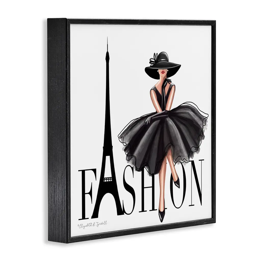 Stupell Parisian Fashion Illustration High End Design Black Dress Framed Wall Art - 12 X 12 - Black