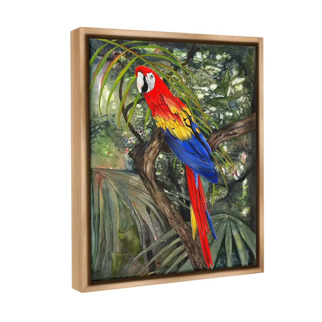 Elevate your home or office to the next level with Stupell Framed Floating Canvas Wall Art. Our premium hand-stretched canvas is mounted securely into a sturdy lightweight frame. The museum-style gap between the wrapped canvas and the box frame gives the illusion of floating artwork. Stupell Wall Art is made in the USA.Features: Dimensions: 17 x 1.7 x 21 Frame, 16 x 1.5 x 20 Canvas ArtFloating Frame Canvas Products are available in sizes 17"x21" and 25"x31". All Floating Frame Canvas Products have a 1.7" Depth.Wall Art is Ready to Hang with Hardware Free Hanging. No Installation required. For Easy Set Up Lean or Layer Artwork on Shelf or Against Wall. Artwork is Permently Fixed into the Frame.Our elevated 1.7" Thick Floating Frame is the perfect complement to our canvas style Wall Art. We use only the highest quality inks in house with industry leading printing solutions. Canvas is hand stretched over a durable wood foundation and then mounted securly into a Modern Box Frame. Made in the USA.Artwork Relates To: Animal, Bird, Macaw, Parrot, Plant, Nature, Rainforest, Tree, JungleDesign by Christine Reichow