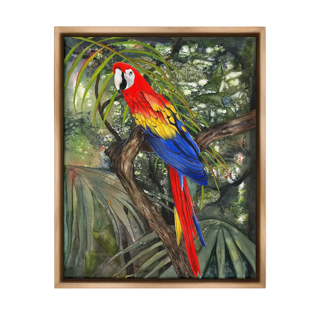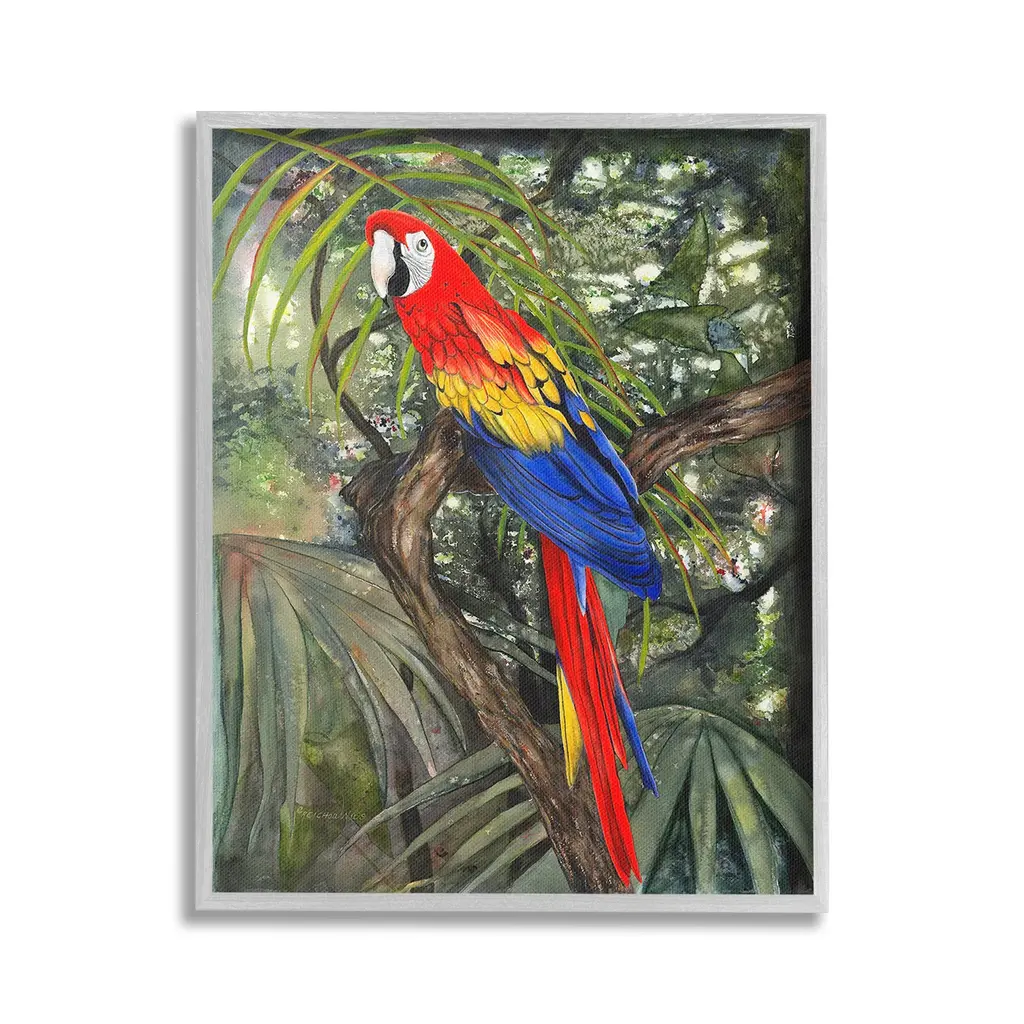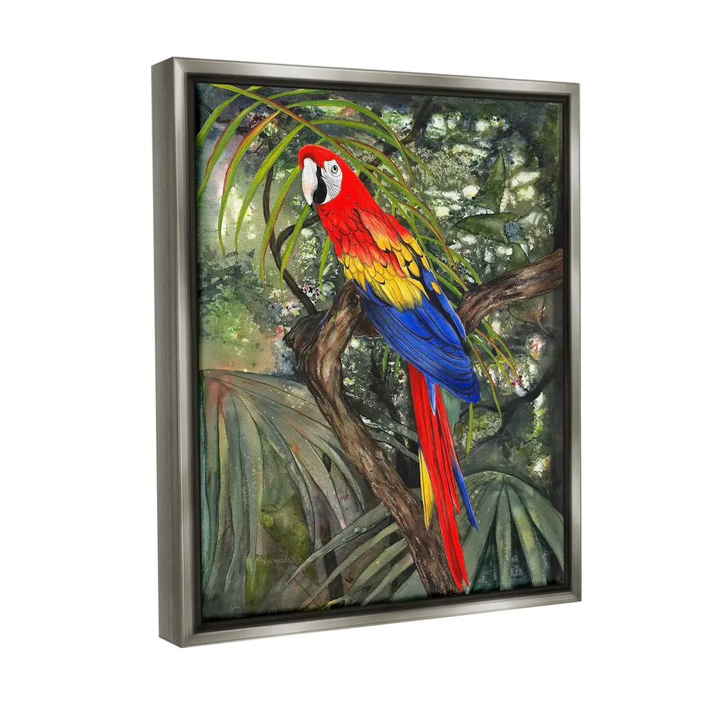 Elevate your home or office to the next level with Stupell Framed Floating Canvas Wall Art. Our premium hand-stretched canvas is mounted securely into a sturdy lightweight frame. The museum-style gap between the wrapped canvas and the box frame gives the illusion of floating artwork. Stupell Wall Art is made in the USA.Features: Dimensions: 17 x 1.7 x 21 Frame, 16 x 1.5 x 20 Canvas ArtFloating Frame Canvas Products are available in sizes 17"x21" and 25"x31". All Floating Frame Canvas Products have a 1.7" Depth.Wall Art is Ready to Hang with Hardware Free Hanging. No Installation required. For Easy Set Up Lean or Layer Artwork on Shelf or Against Wall. Artwork is Permently Fixed into the Frame.Our elevated 1.7" Thick Floating Frame is the perfect complement to our canvas style Wall Art. We use only the highest quality inks in house with industry leading printing solutions. Canvas is hand stretched over a durable wood foundation and then mounted securly into a Modern Box Frame. Made in the USA.Artwork Relates To: Animal, Bird, Macaw, Parrot, Plant, Nature, Rainforest, Tree, JungleDesign by Christine Reichow