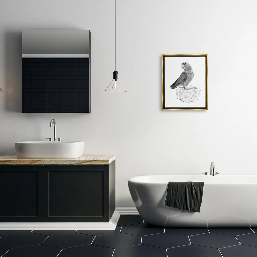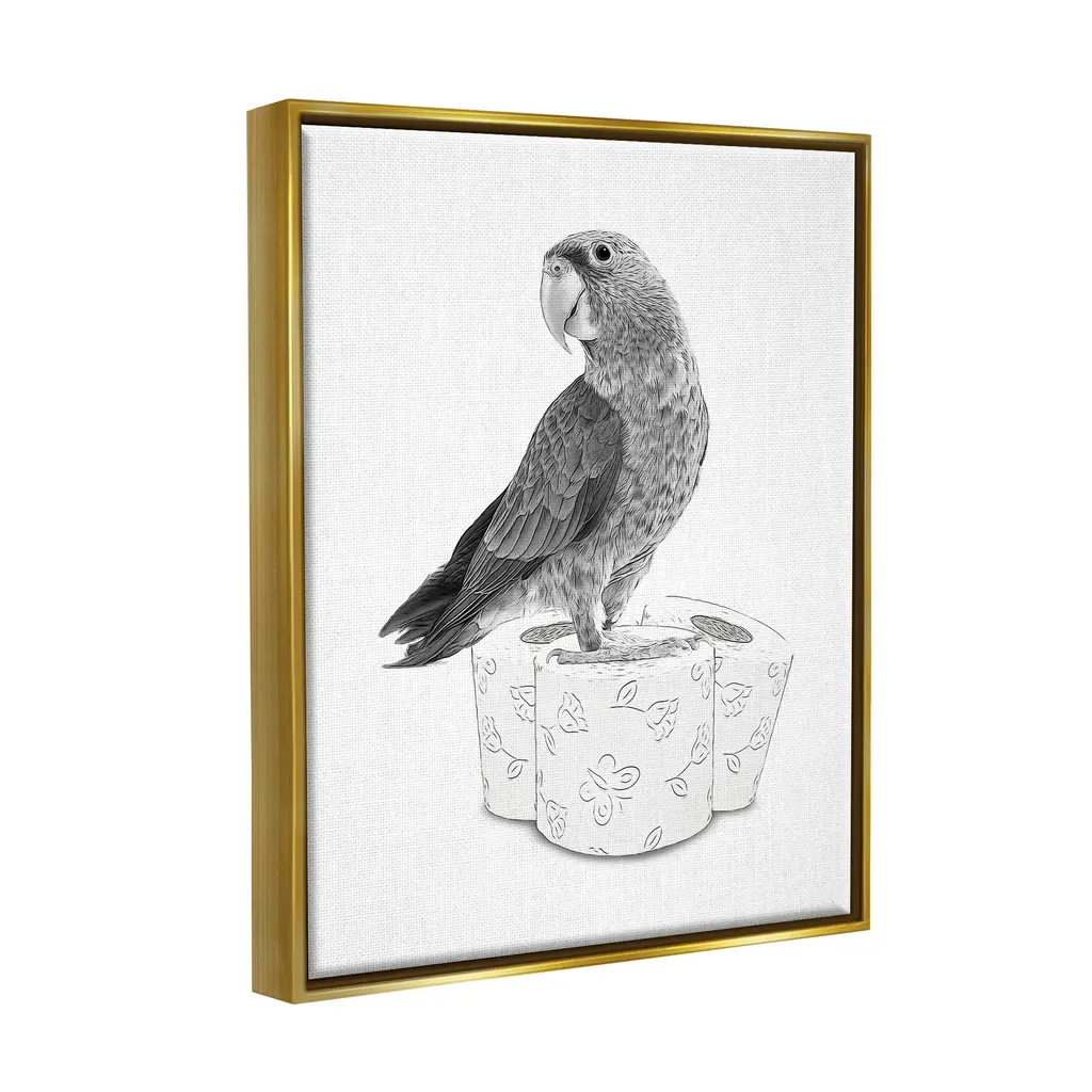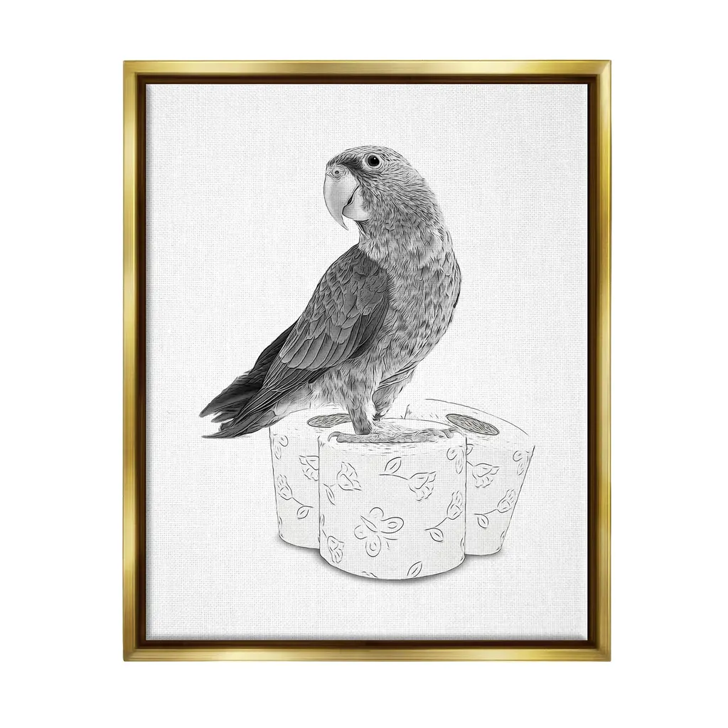 Stupell Parrot & Toilet Paper Bathroom Framed Floater Canvas Wall Art By Annalisa Latella - 24 X 30 - Gold