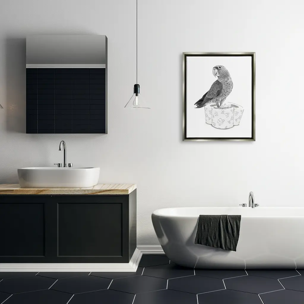 Elevate your home or office to the next level with Stupell Framed Floating Canvas Wall Art. Our premium hand-stretched canvas is mounted securely into a sturdy lightweight frame. The museum-style gap between the wrapped canvas and the box frame gives the illusion of floating artwork. Stupell Wall Art is made in the USA.Features: Dimensions: 17 x 1.7 x 21 Frame, 16 x 1.5 x 20 Canvas ArtFloating Frame Sizes Include Standard: 17 x 1.7 x 21 Oversized: 25 x 1.7 x 31Wall Art is Ready to Hang - No Installation or Hardware Needed. For Easy Set Up Lean or Layer Artwork on Shelf or Against Wall.Our elevated 1.7" Thick Floating Frame is the perfect complement to our canvas style Wall Art. We use only the highest quality inks in house with industry leading printing solutions. Canvas is hand stretched over a durable wood foundation and then mounted securly into a Modern Box Frame. Made in the USA.Artwork Relates To: Animal, Mammal, Wildlife, Bathroom, ParrotDesign by Annalisa Latella