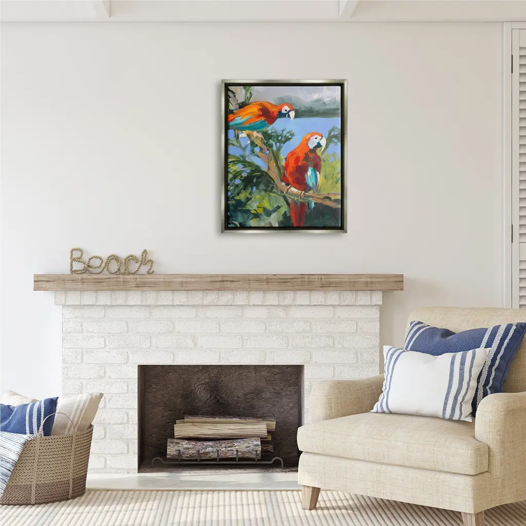 Elevate your home or office to the next level with Stupell Framed Floating Canvas Wall Art. Our premium hand-stretched canvas is mounted securely into a sturdy lightweight frame. The museum-style gap between the wrapped canvas and the box frame gives the illusion of floating artwork. Stupell Wall Art is made in the USA.Features: Dimensions: 17 x 1.7 x 21 Frame, 16 x 1.5 x 20 Canvas ArtFloating Frame Sizes Include Standard: 17 x 1.7 x 21 Oversized: 25 x 1.7 x 31Wall Art is Ready to Hang with Hardware Free Hanging. No installation required. For Easy Set Up Lean or Layer Artwork on Shelf or Against Wall.Our elevated 1.7" Thick Floating Frame is the perfect complement to our canvas style Wall Art. We use only the highest quality inks in house with industry leading printing solutions. Canvas is hand stretched over a durable wood foundation and then mounted securly into a Modern Box Frame. Made in the USA.Artwork Relates To: Animal, Bird, Painting, Person, Parrot, Macaw, Ocean, Sea, WaterDesign by Jane Slivka