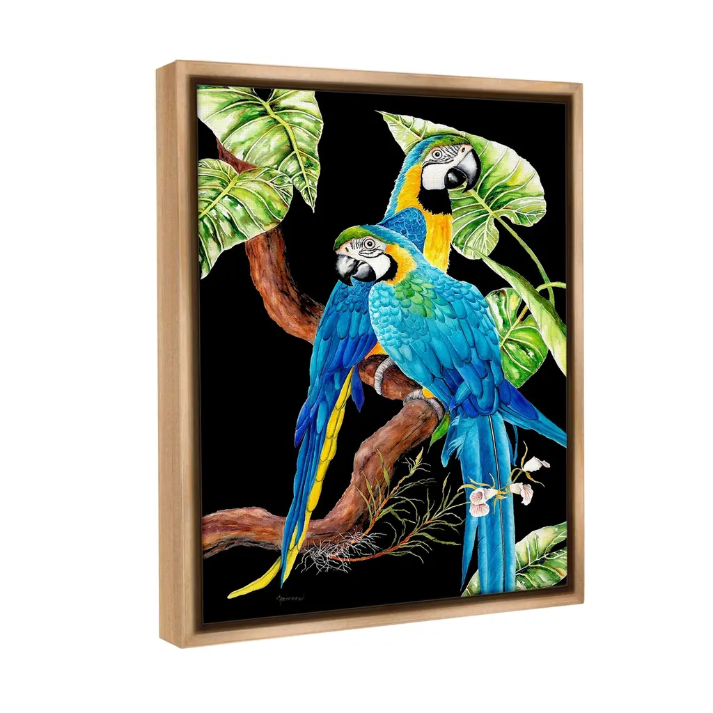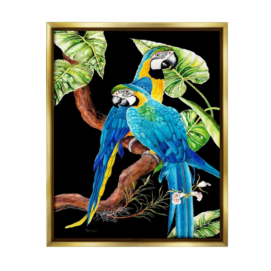 Elevate your home or office to the next level with Stupell Framed Floating Canvas Wall Art. Our premium hand-stretched canvas is mounted securely into a sturdy lightweight frame. The museum-style gap between the wrapped canvas and the box frame gives the illusion of floating artwork. Stupell Wall Art is made in the USA.Features: Dimensions: 17 x 1.7 x 21 Frame, 16 x 1.5 x 20 Canvas ArtFloating Frame Canvas Products are available in sizes 17"x21" and 25"x31". All Floating Frame Canvas Products have a 1.7" Depth.Wall Art is Ready to Hang with Hardware Free Hanging. No Installation required. For Easy Set Up Lean or Layer Artwork on Shelf or Against Wall. Artwork is Permently Fixed into the Frame.Our elevated 1.7" Thick Floating Frame is the perfect complement to our canvas style Wall Art. We use only the highest quality inks in house with industry leading printing solutions. Canvas is hand stretched over a durable wood foundation and then mounted securly into a Modern Box Frame. Made in the USA.Artwork Relates To: Animal, Bird, Macaw, Parrot, Beak, Leaf, Plant, Nature, Branch, RainforestDesign by Christine Reichow